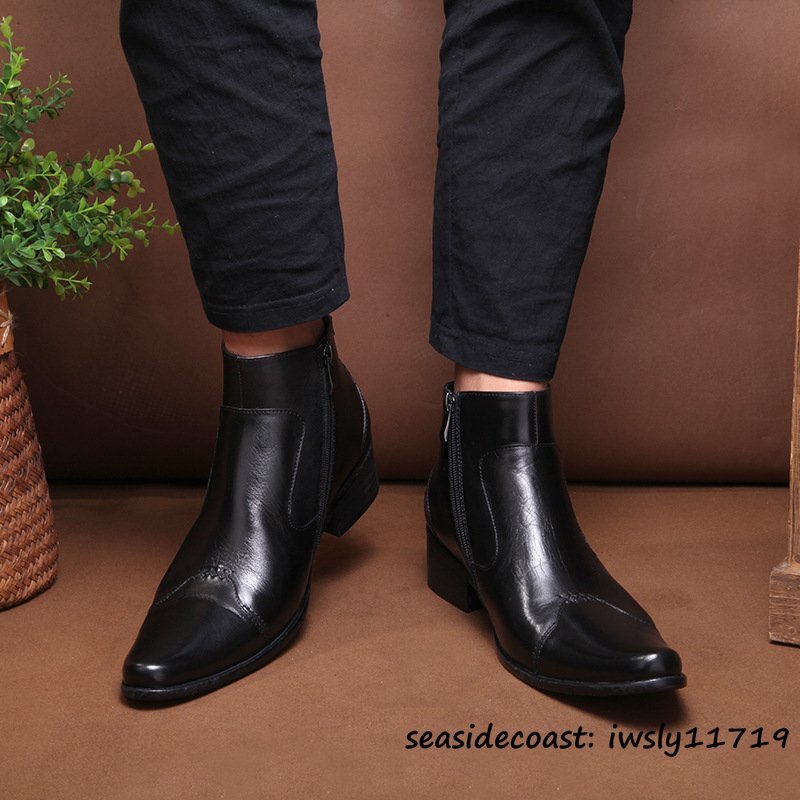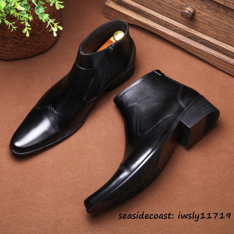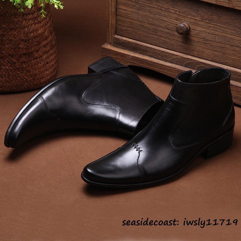 最上級*定価12万 本革 ショートブーツ イギリス風 レザーブーツ 牛革 職人手作り 皮靴 ビジネスシューズ マーティンブーツ ブラック 24.0cm