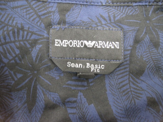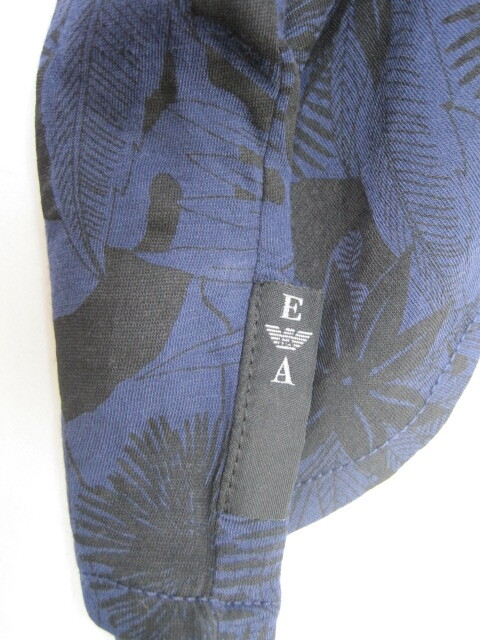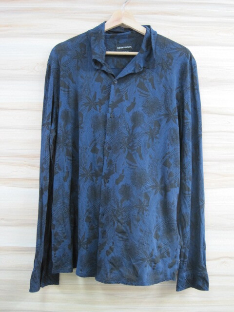 4717 EMPORIO ARMANI  エンポリオアルマーニ メンズ 長袖シャツ ネイビー&ブラック ボタニカル柄 XLサイズ