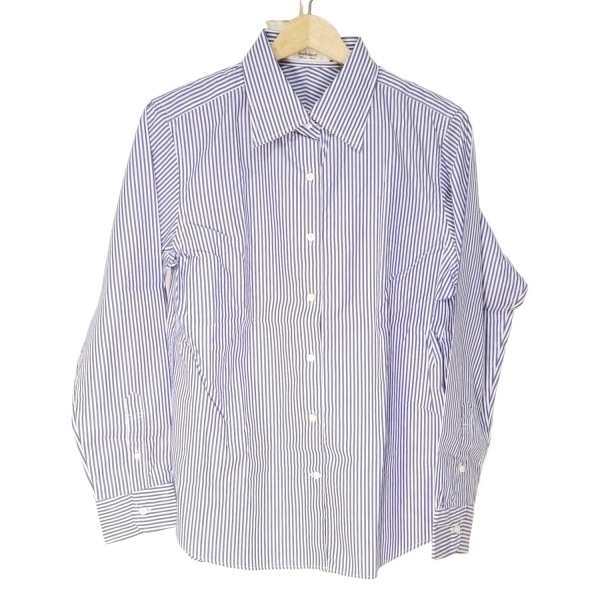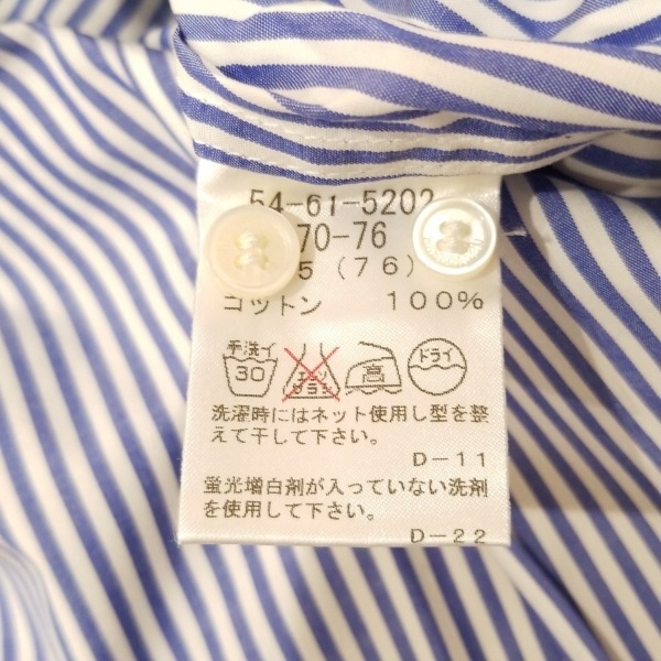 ニューヨーカー NEW YORKER 長袖シャツブラウス サイズ15(76) - 白×ネイビー レディース ストライプ 美品 トップス