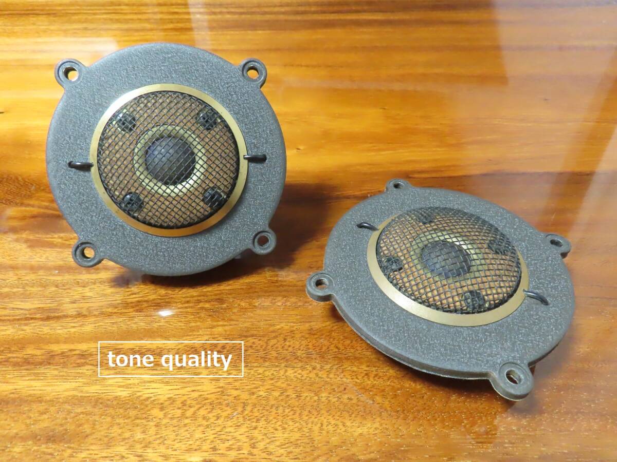 ●目立つダメージ無く、全体的に非常に綺麗な希少な個体です。 ●ボロンドーム振動板良好です。左右雑音無く綺麗な音楽を聞かせてくれます。 ●発売は1986年、当時のペア価格158000円の高級機です。 ●ボロンはとても綺麗な音を聞かせてくれますが、割れやすい特徴をもっています。現在流通している物のみでどこも生産していない超希少な振動板です。 ●インピーダンス 6Ω ●修理などで状態の良いシステムをお探しの方は是非。 | |||