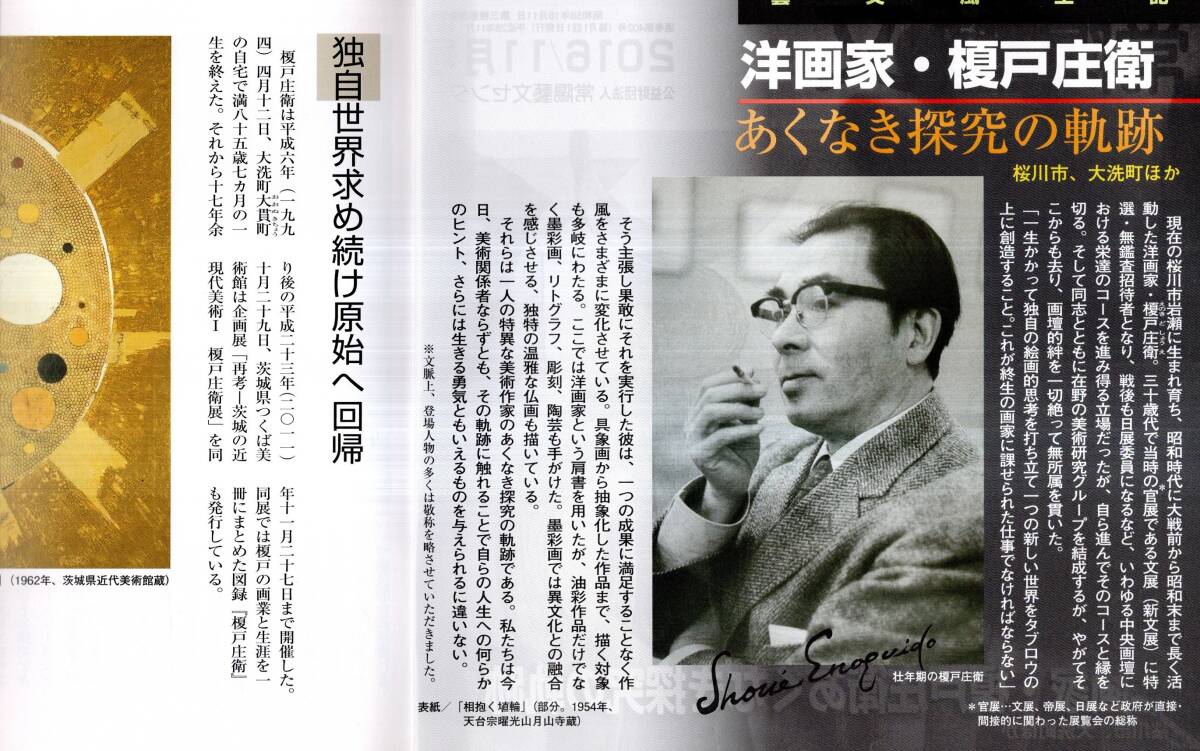 地元常陽銀行系の会員向け月刊誌で、全32頁のうち11頁にわたり地元ならではの視点から“洋画家・榎戸庄衛”について紹介しております。(写真版多し)