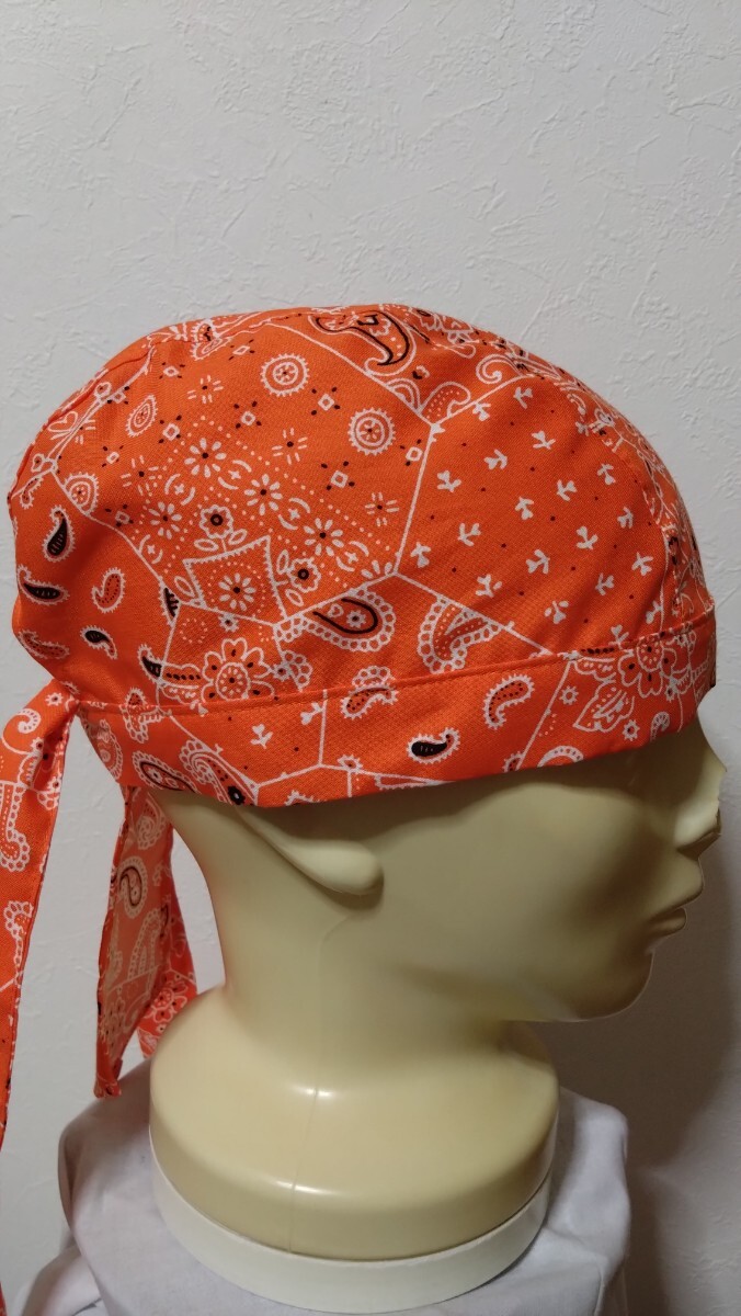 ★バンダナキャップ★ハンドメイド ペイズリー バンダナ オレンジ