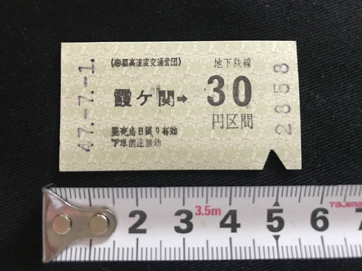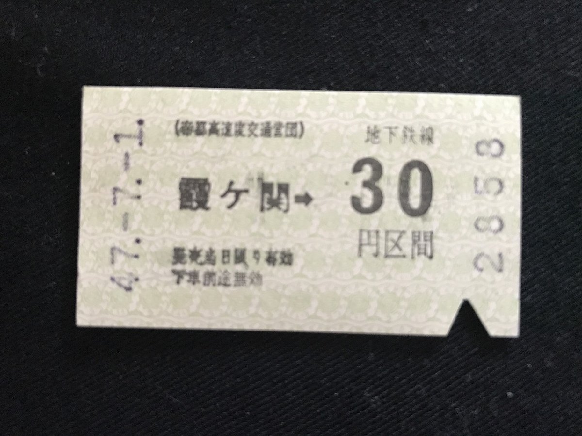 i☆* 古い切符 昭和47.7.1 霞ヶ関から地下鉄線30円区間 乗車券 軟券 1点 90/C05