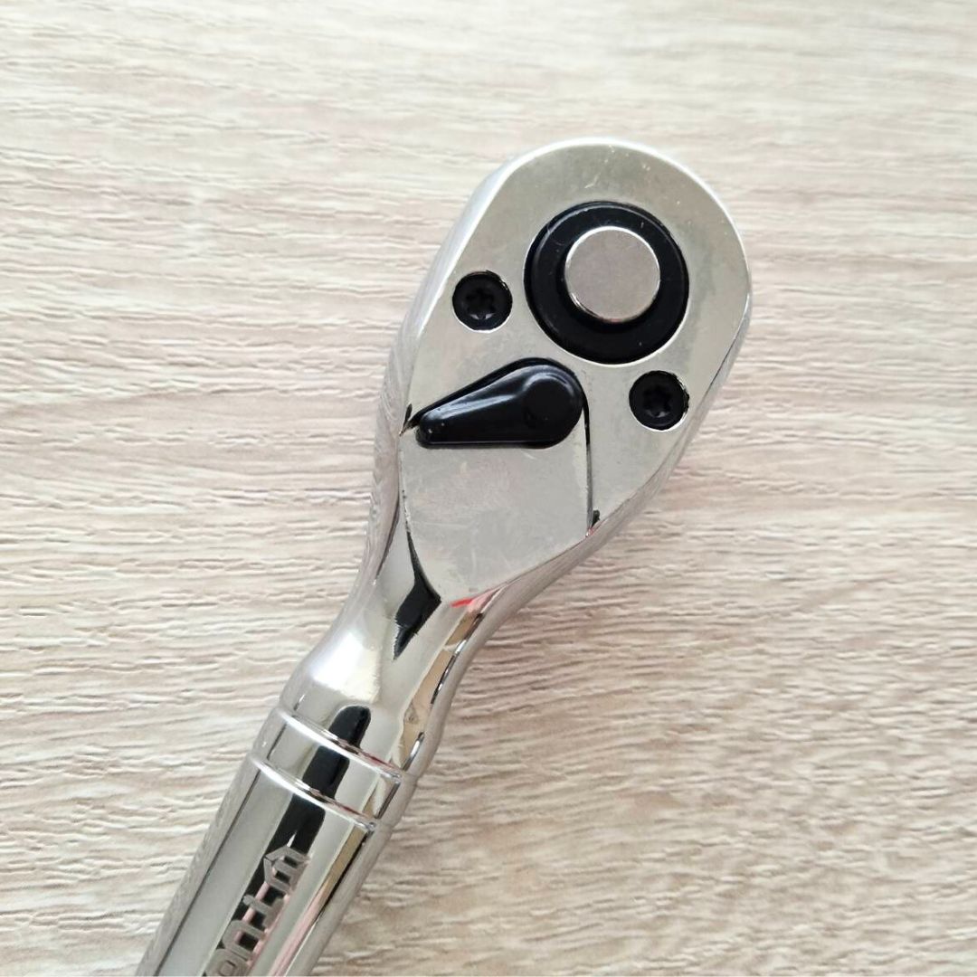 差込角6.35mm(1/4インチ)対応のショートタイプ ラチェットハンドルです。