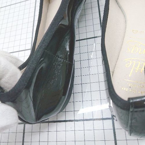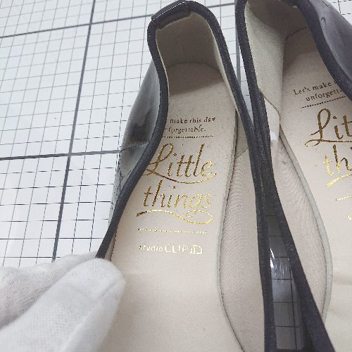 ◇ Θ スタディオクリップ シンプル フラット ラウンドトゥエナメル調バレエシューズ サイズL ブラック系 レディース E