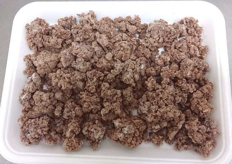 馬肉の赤身を荒ヒキにして食べやすい大きさにし
