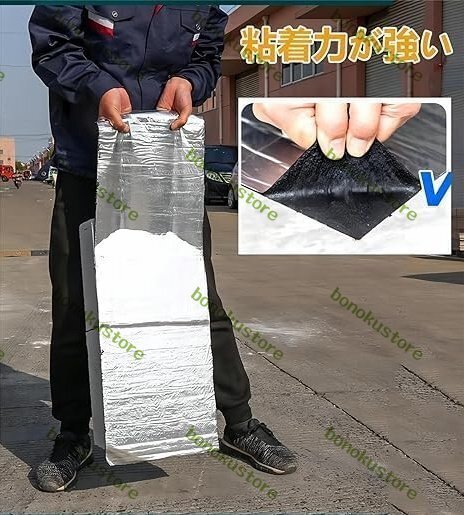 この商品について【強力な接着力】接着面は強力な接着力素材を使用し、耐久性も優れていて、長期間使用でも防水性能を保てます。【強力防水】良質なアルミニウム箔材料、防水性、漏れ防止性、断熱性に優れている。【簡単設置】一人で簡単に作業できます。 保護フィルムをはが