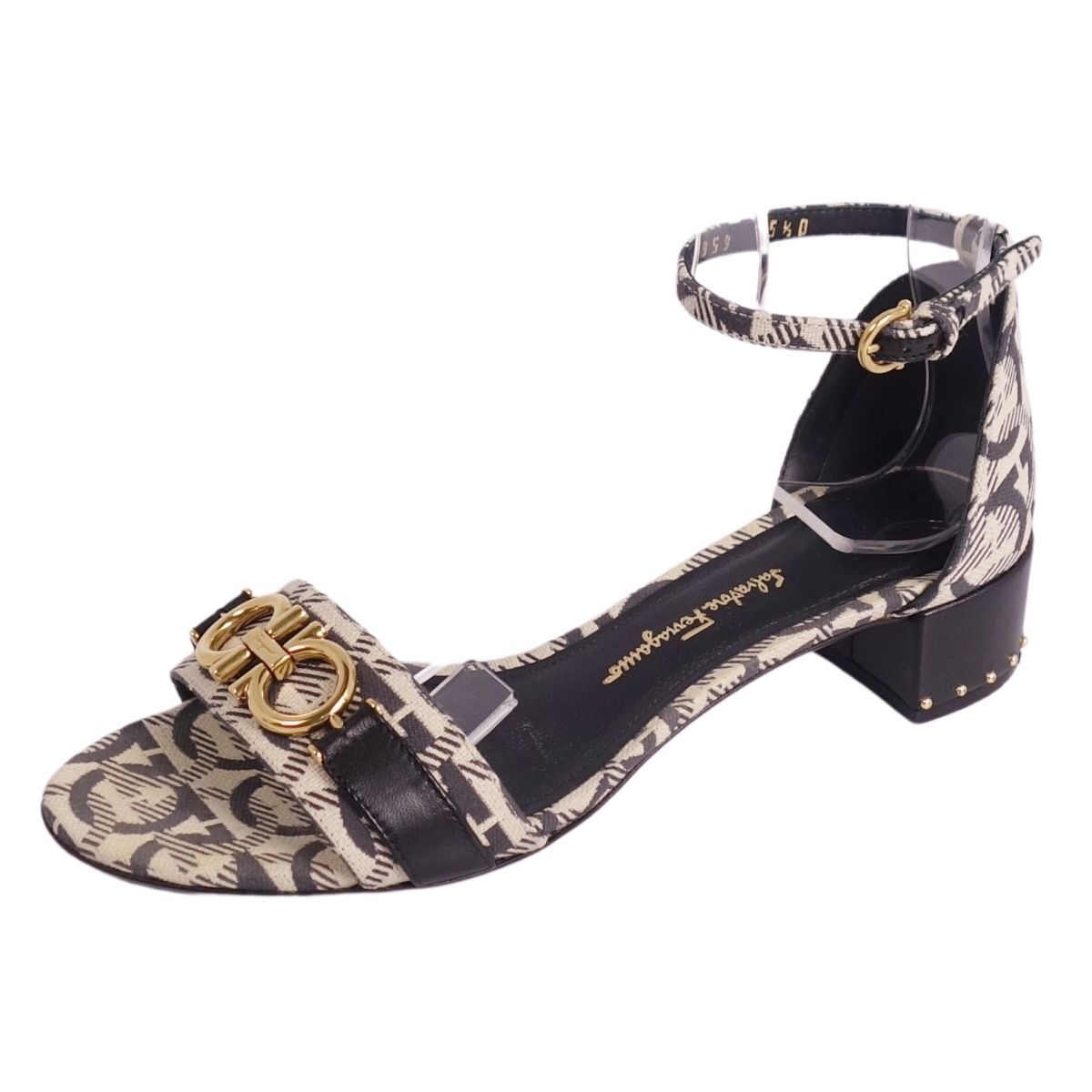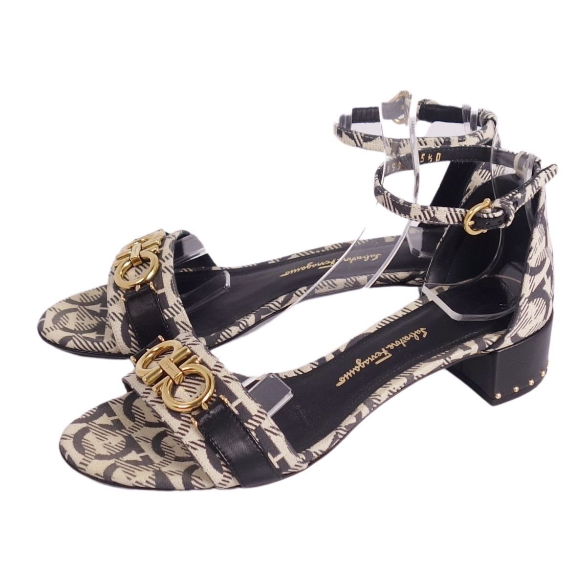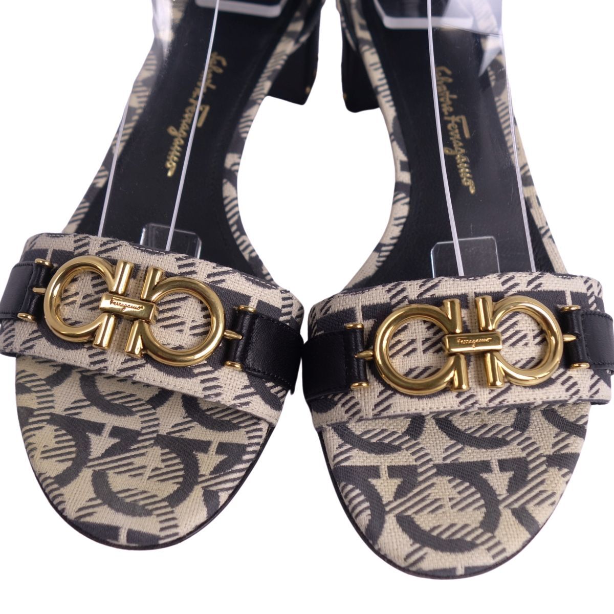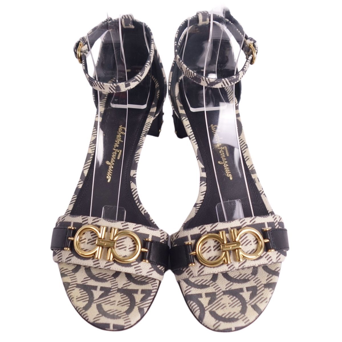 | 美品 サルヴァトーレ フェラガモ Salvatore Ferragamo サンダル アンクルストラップ ガンチーニ キャンバス 5.5ベージュ |