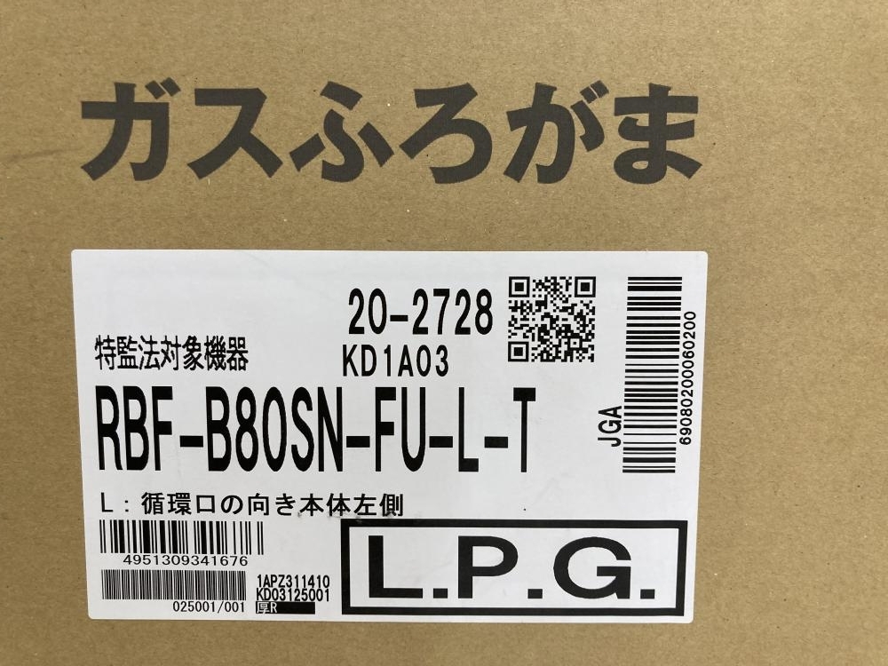リンナイ ■商品名 ふろがま+吸排気トップ ■型番 RBF-B80SN-FU-L-T+68SWWS200 |