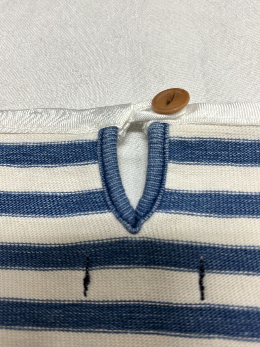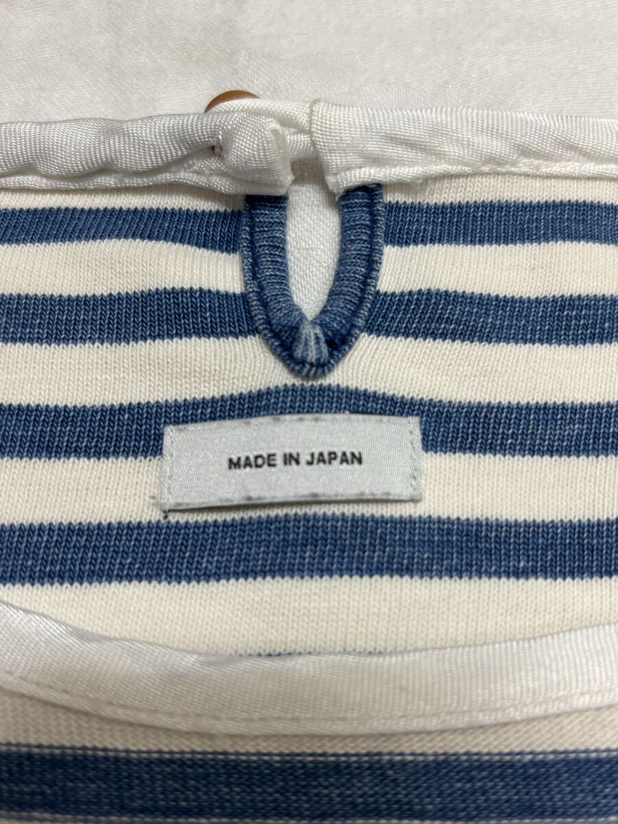 色は白×インディゴ。素材表記はコットン100% 、日本製。