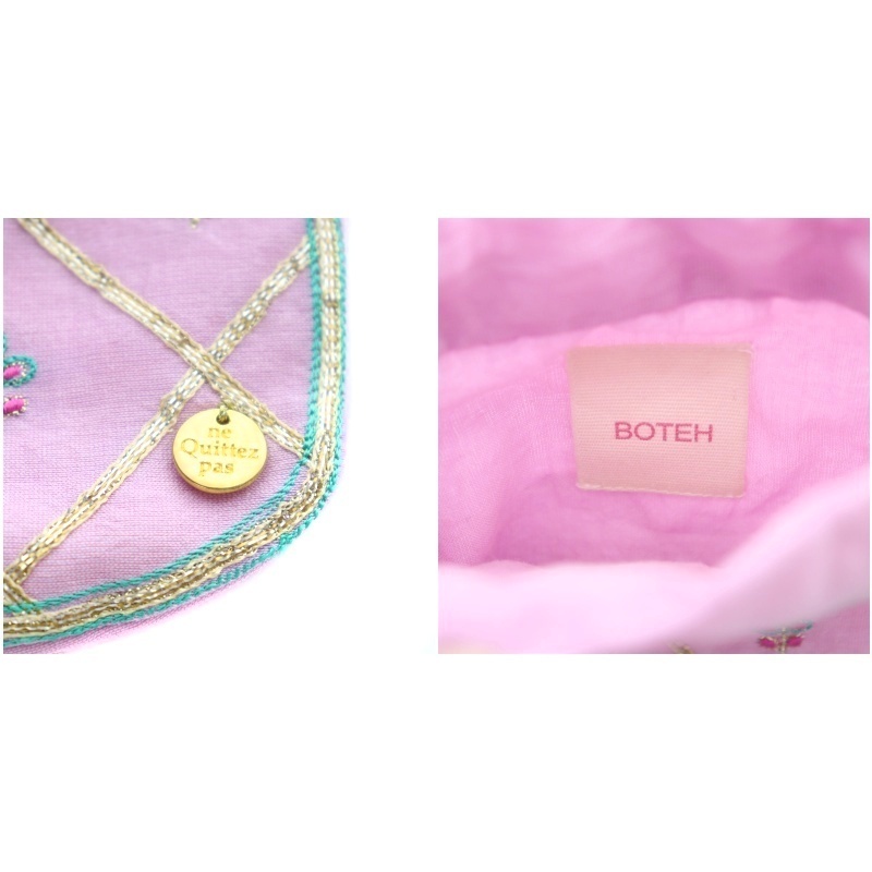 ヌキテパ NE QUITTEZ PAS! ×BOTEH 巾着 ポシェットバッグ ショルダー 刺繍 ピンク 緑 ■SH /RI ■OS レディース