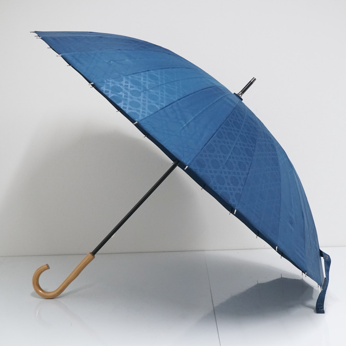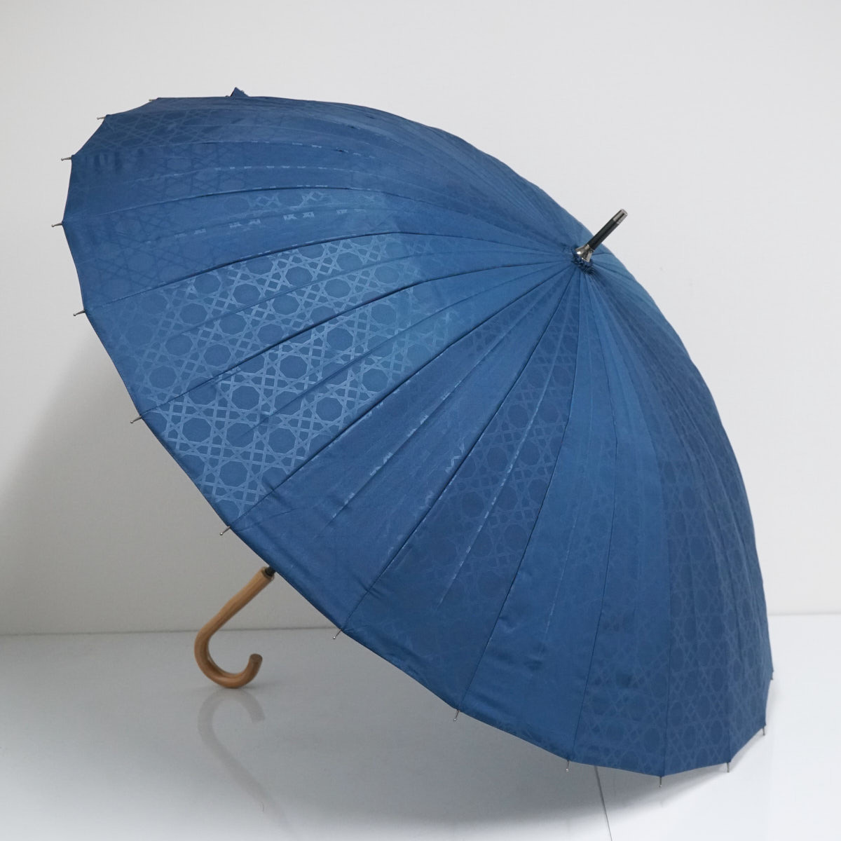 ★☆mabu マブ 傘 江戸 24本骨傘 USED美品 紺×八角籠目 江戸切子 和風モダン レトロ 男女兼用 UV グラス骨 60cm ☆★
