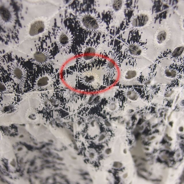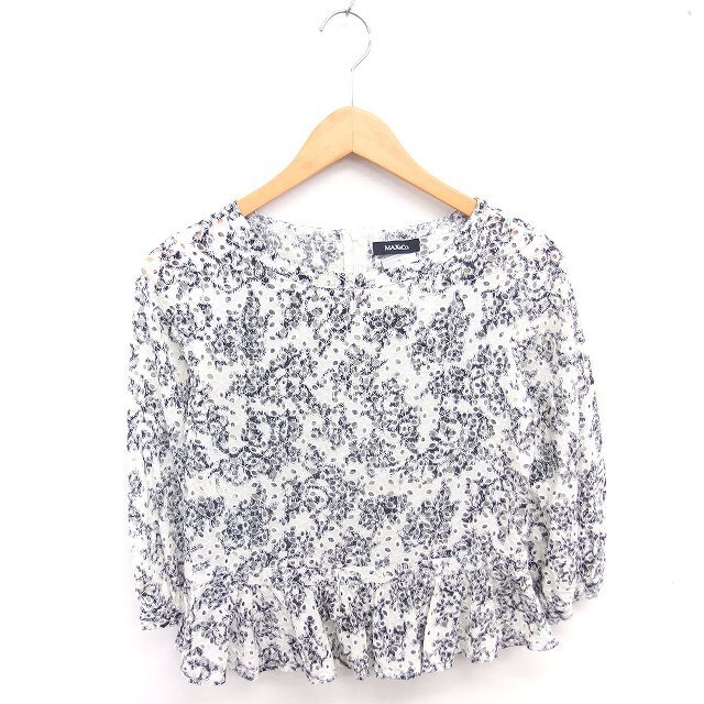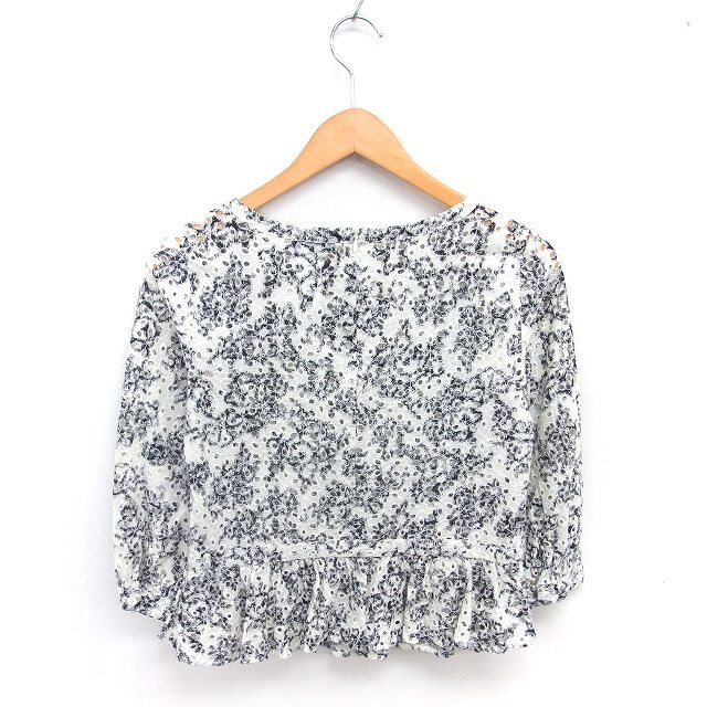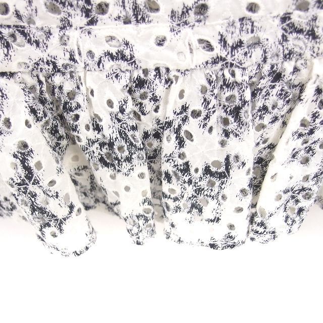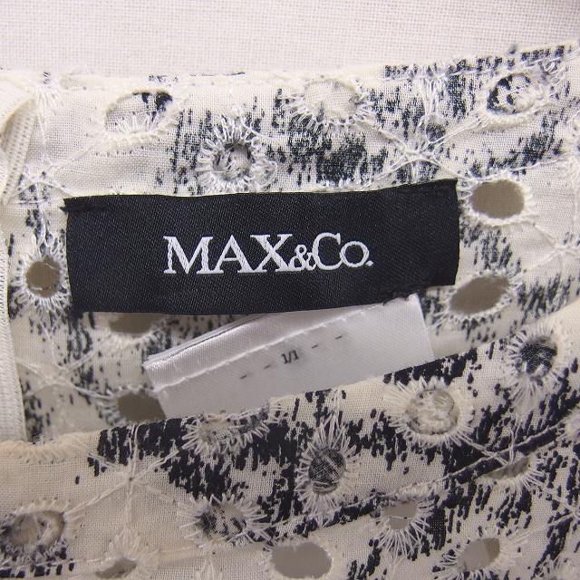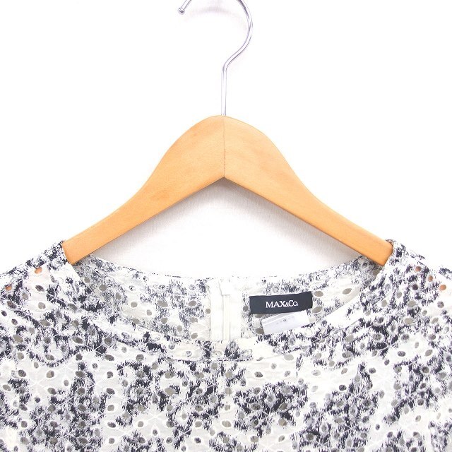 マックス&コー MAX&CO. カットソー ブラウス 総柄 カットワーク刺? フレア 七分袖 36 アイボリー ブラック 黒 /TT レディース