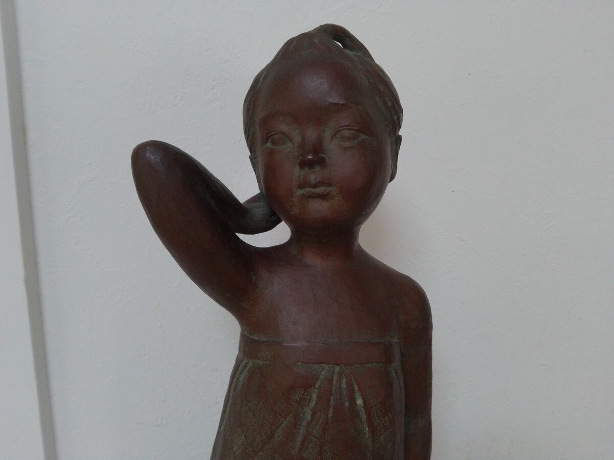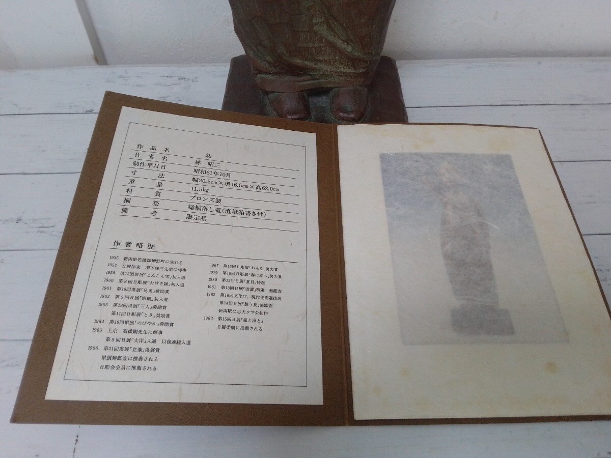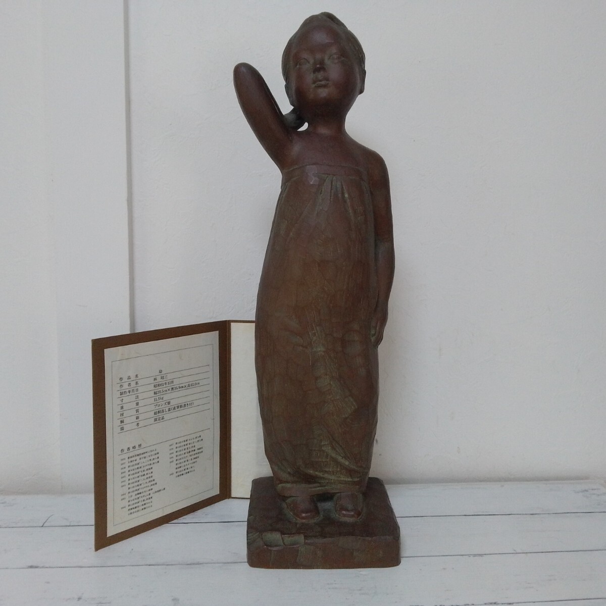 ★彫刻家【林 昭三】ブロンズ銅『幼』少女像置物 高さ62cm