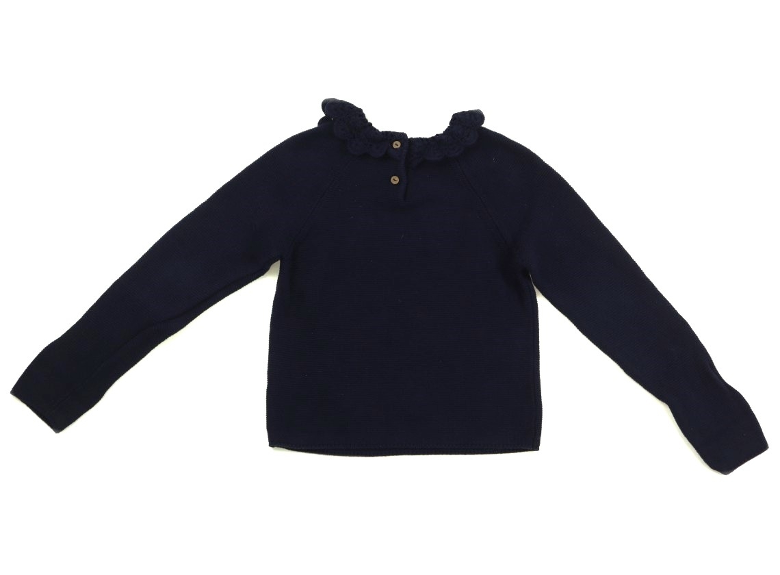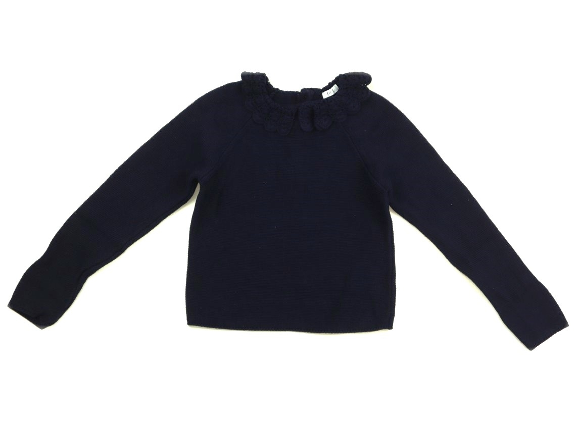 コットンニットです。実際のサイズ表記は5~6Y/116cmです。全体的に毛羽立ちがあります。まだまだ普段着として活躍してくれそうです。後ろボタンあきです。