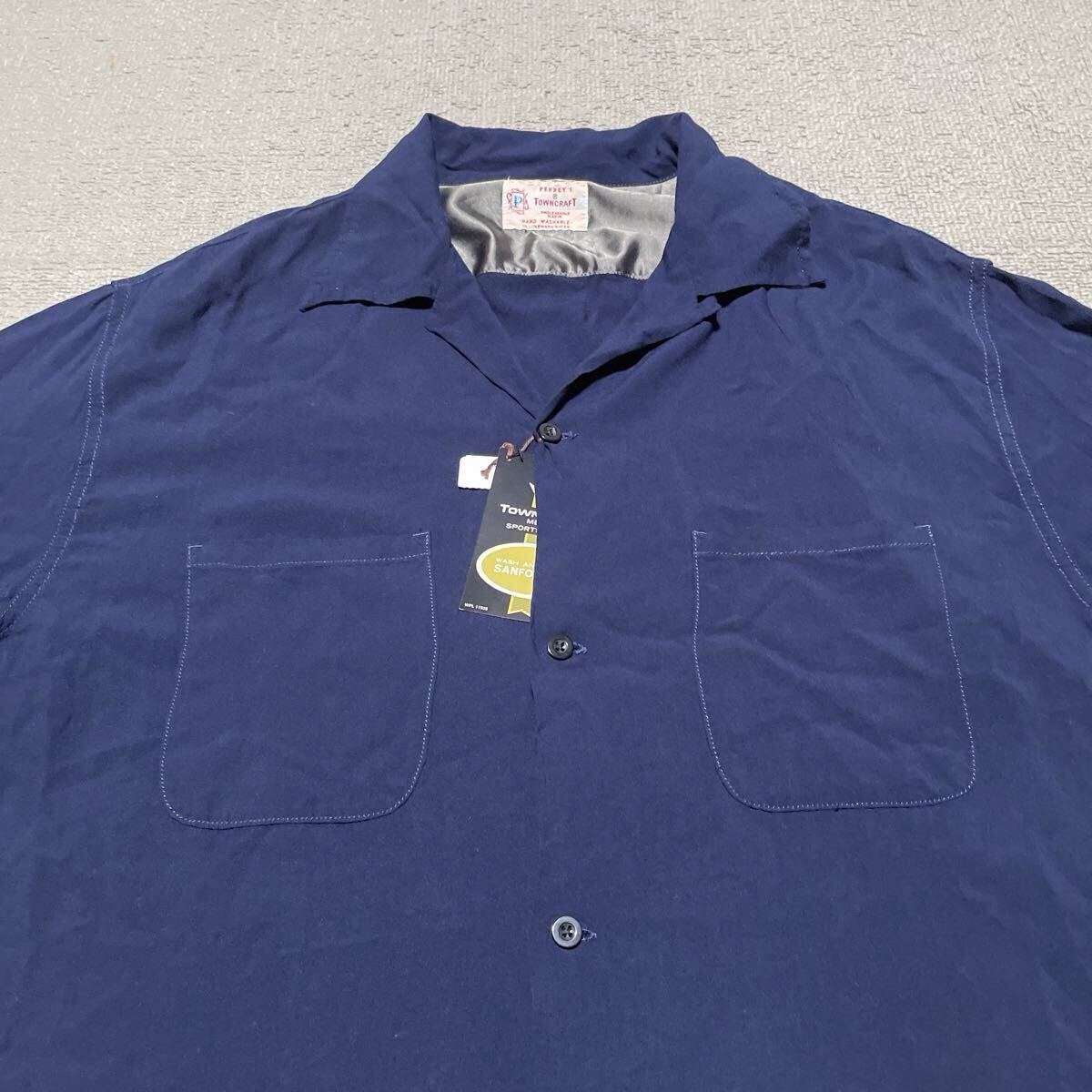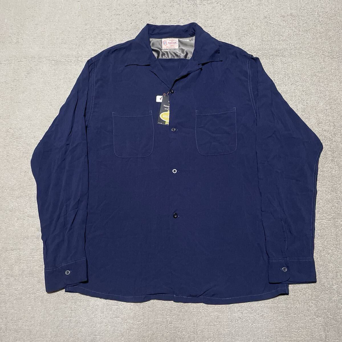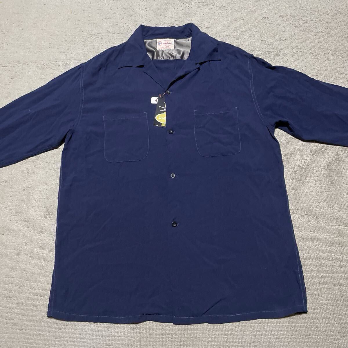 未使用 タグ付き 復刻 TOWNCRAFT タウンクラフト オープンカラー 開襟 レーヨン 長袖 シャツ ネイビー 紺 M ソリッド