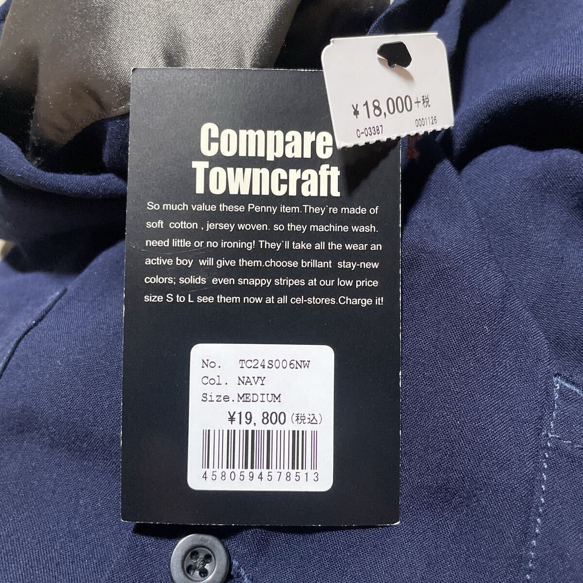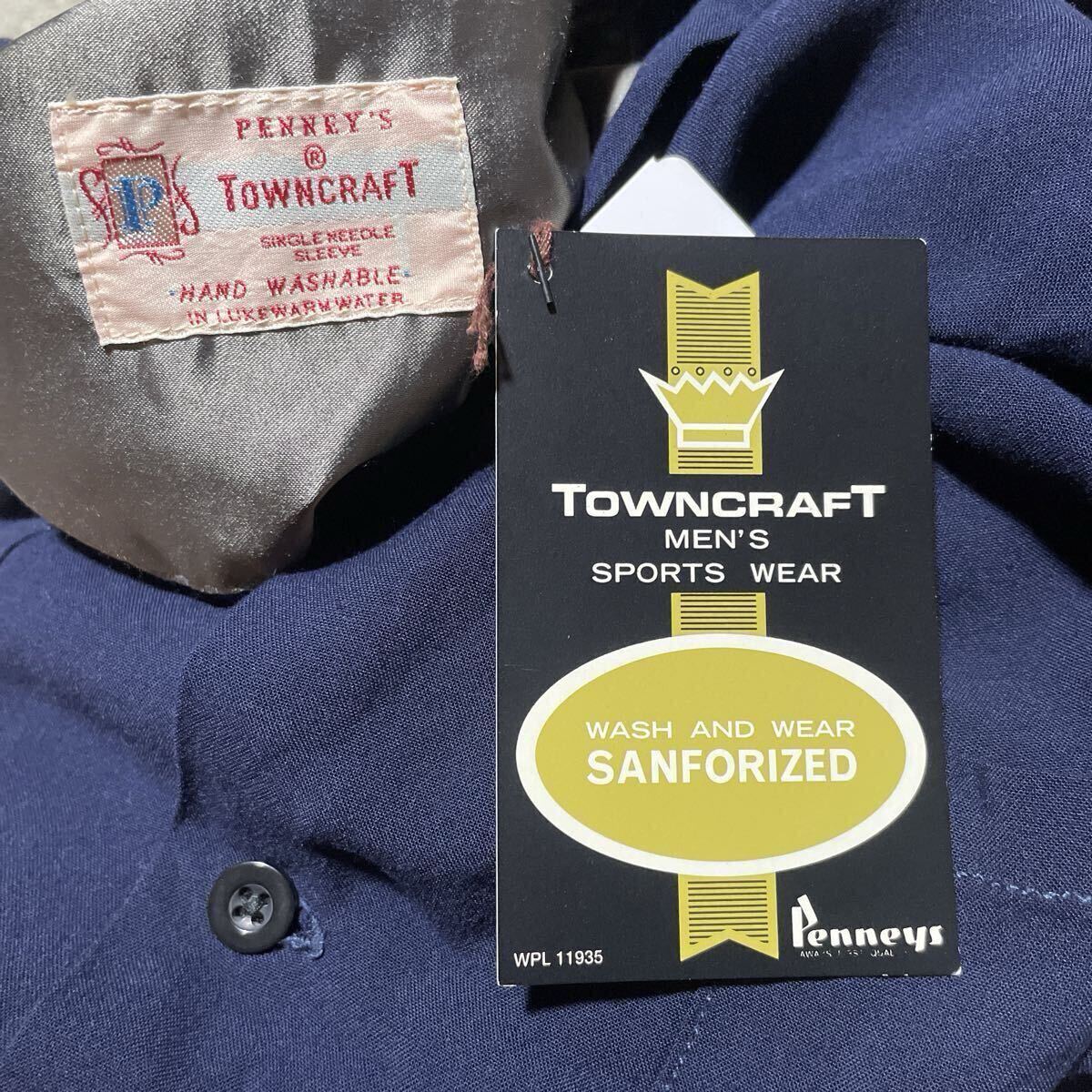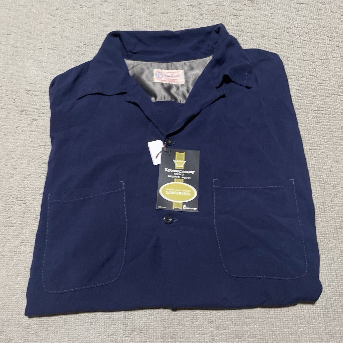 未使用 タグ付き 復刻 TOWNCRAFT タウンクラフト オープンカラー 開襟 レーヨン 長袖 シャツ ネイビー 紺 M ソリッド