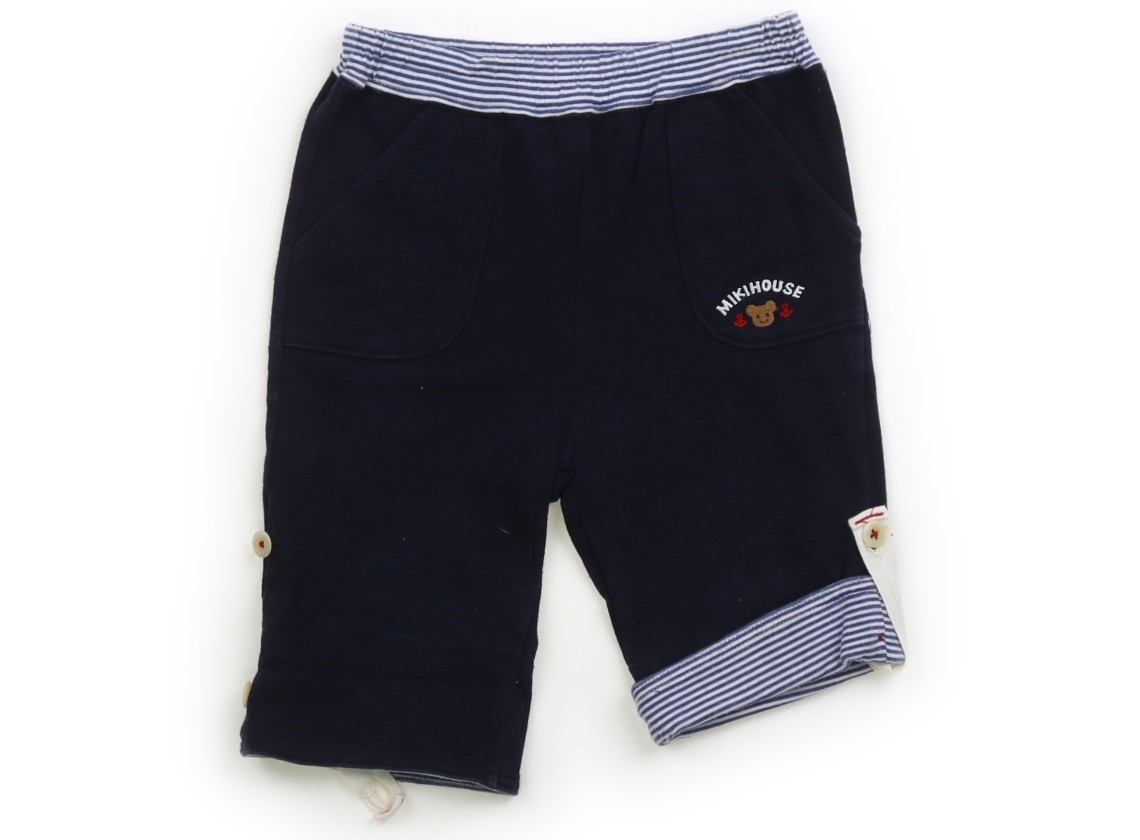 少し厚手の天竺カットソー生地です。ウエストは総ゴムです。裾口はロールアップ可能で裏はボーダー生地です。若干毛羽立ち、色褪せ感がありますが、型崩れはありません。