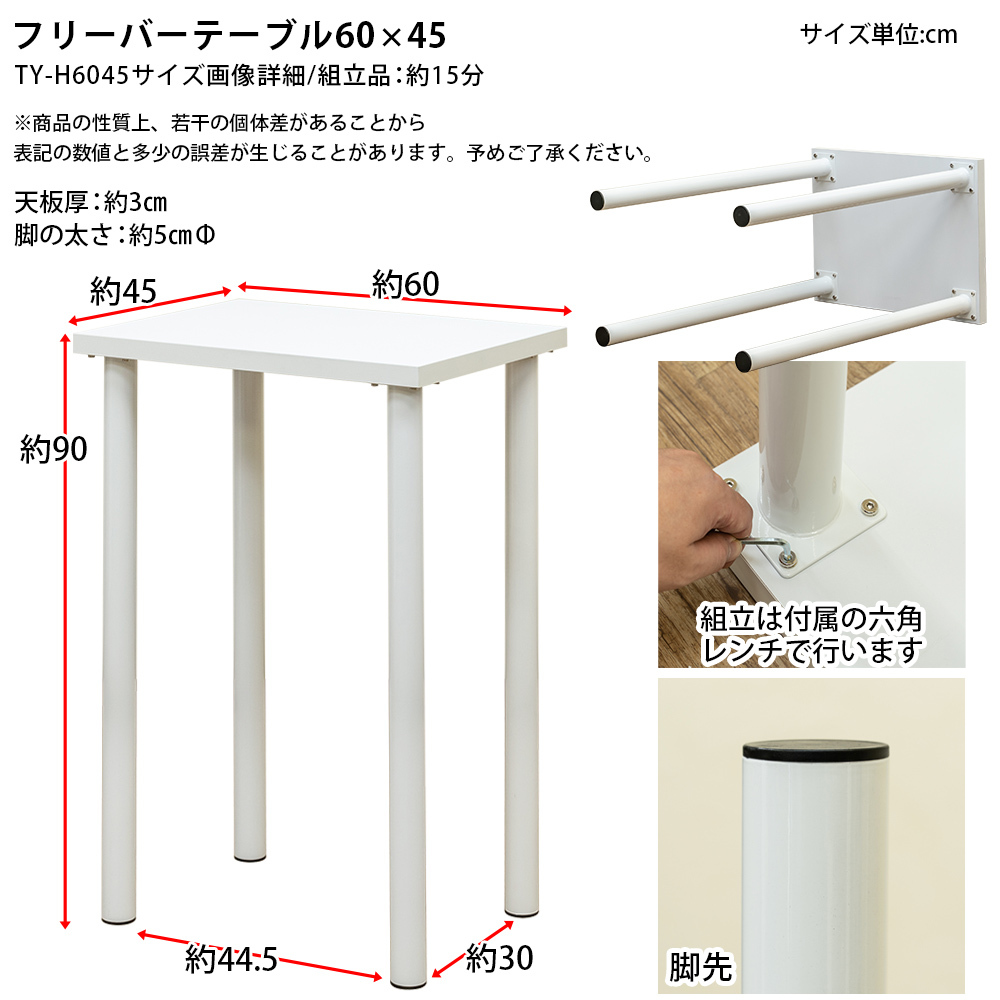 サイズ | (W)幅60cm×(D)奥行45cm×(H)高90cm 天板の厚み:約3cm 脚の太さ:約5cm |