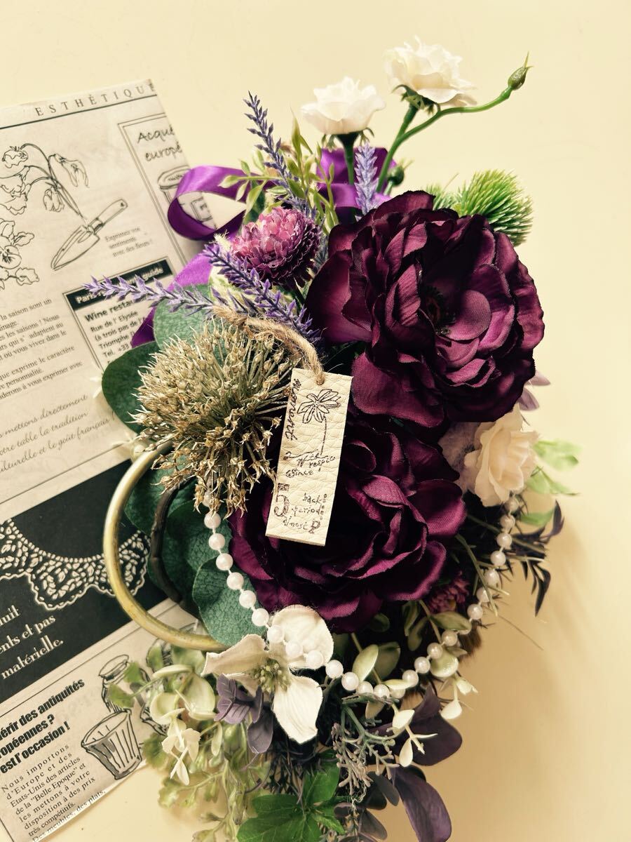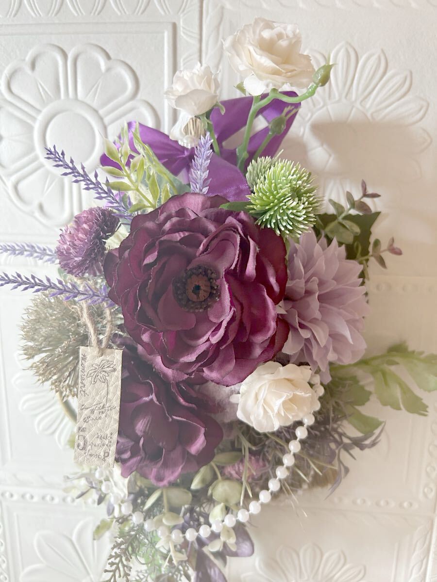 サイズ=縦43センチお部屋のアクセントに濃いパープル お花は飾りたいけど、虫や毎日の水やりが、、と思ってる方!花散り、色変わりほぼなく、お水永遠不要なアートフラワーはいかがでしょうか 生花に近い色、風合いのものをチョイスで作成、接着剤乾燥のため、風通しの良い日陰で固めた新品。 |