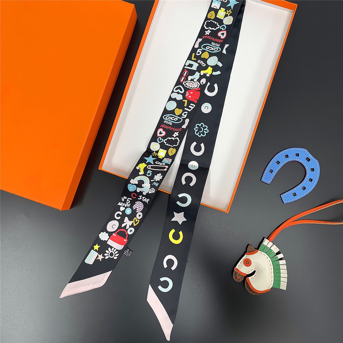 【BD-190-1】新品スカーフ ネックスカーフ ヘアクセサリー リボン結び 長め  バックスカーフ ブラック