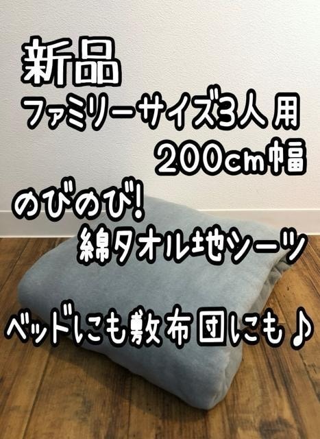 新品☆ファミリー3人用200cm綿100%タオル地のびのびシーツ♪☆Q226