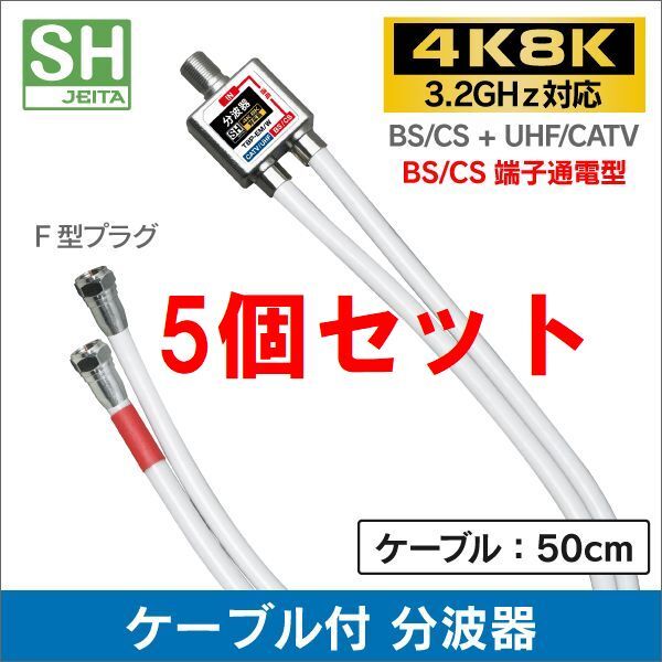 ネコポス無料!5個セット 4K・8K 地デジ BS・CS対応 ケーブル付き 分波器 混合器 ・混合分波器 セパレーター TBP-EM/W x5