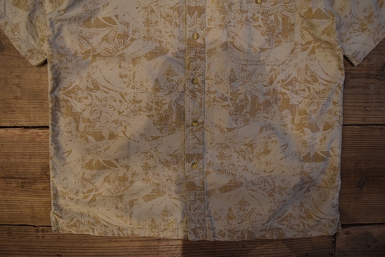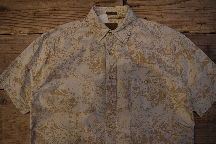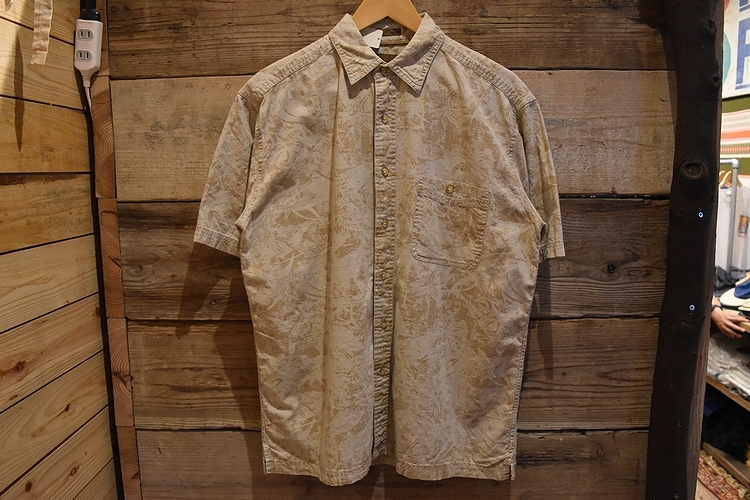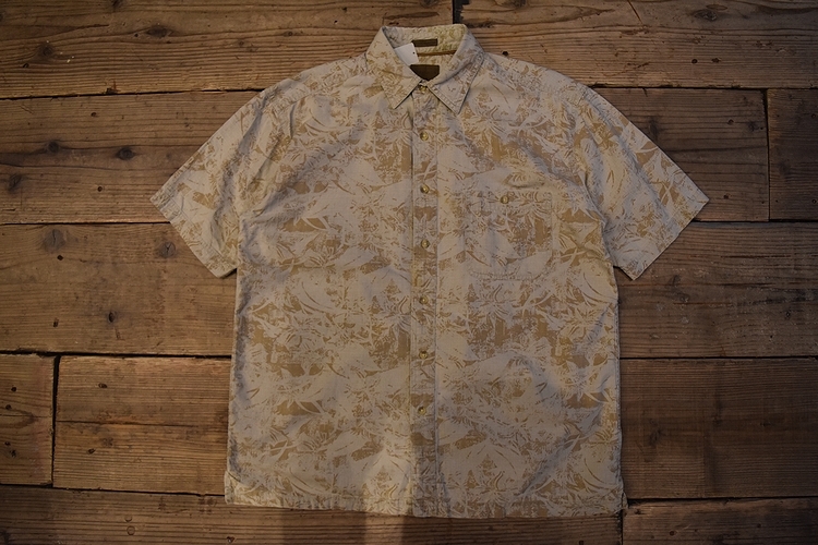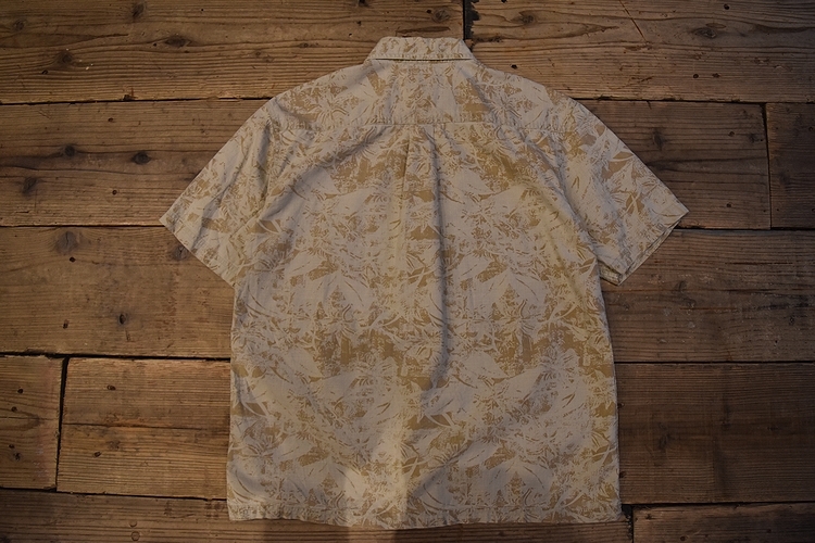 グッドスタイルアイテム◎90sビンテージST JOHN'S BAYセントジョーンズベイ半袖コットン総柄シャツMベージュ系100綿アメカジ t979