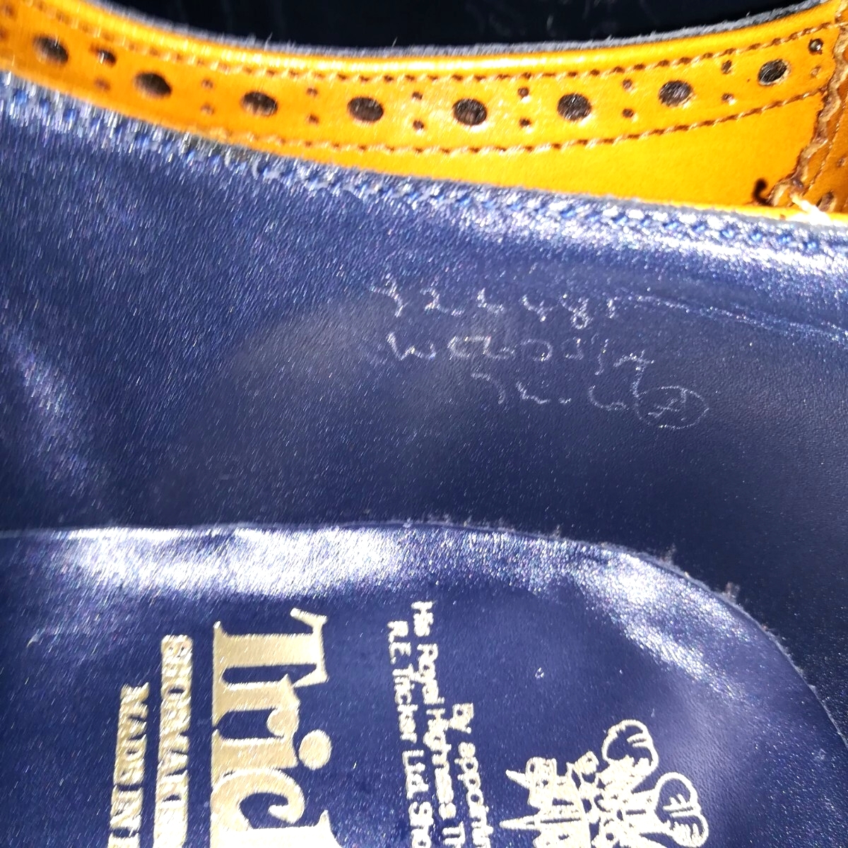 商品説明 | 埼玉県からの発送になります。 おてがる配送 宅急便にて発送致します。 発送は落札してから1~3日見ていただければと思います。諸事情により発送が遅れる可能性がございます。 トリッカーズ ウイングチップシューズです。 商品詳細 お色 ライトブラウン サイズ 7 1/2 アウトソール全長約31.3cm 全幅 約12cm (素人採寸ですので多少の誤差はご容赦ください) ●状態①「外観」 履きジワ、多少の傷、変色・汚れがございますが、比較的良好な状態です。 ●状態②「ソール・インナー」 ・インソールロゴは綺麗に残っています。 ・踵の削れは2mm程度ございます。 ●その他・付属等 シューズキーパーや箱、袋といった付属品はございません。 神経質な方はご購入はお控えくださいますようお願い致します。 こちらに重大な過失があった場合のみ返品可(それ以外のサイズ違い等といった理由は不可。) また、お届けしてから1週間以上経過した物についても不可とさせていただきます。上記返品期限経過後の取引ナビ等々からの返品についてのご連絡に関しては対応致し兼ねますのでご了承ください。 出品商品に関しましては他で譲り先が見つかった、在庫処分等の理由で予告無く出品を取り下げる場合もございますので、予めご了承ください。 ※領収書の発行は受け付けておりません。 見落としている傷や汚れ、また中古品などには検品時に気づけないような経年の使用や保管による内部劣化や消耗などがある可能性が御座います。また、シューキーパーを入れて撮影しておりますので実際と印象が異なる場合がございます。 重ねてになりますが、ご理解のある方だけ、ご入札下さいませ。 商品はプチプチに包装して発送致します。スエード素材の商品はプチプチの跡が付く可能性がございますので、ブラシや手で均していただくようお願い致します。 商品写真は撮影時の明るさや光の当たり具合、お使いのディスプレイ(彩度、明るさの設定)等によって、実物の色味と差が生じる場合がございます。 また、当方は素人ですので予めご了承ください。 他にも様々出品しておりますので、どうぞご覧ください ↑↑↑↑↑↑↑↑↑↑↑↑↑↑↑↑ ■決済金額・決済方法■ 【決済金額】 落札価格+送料が決済金額となります。 【決済方法】Yahoo!かんたん決済(クレジットカード、コンビニ、銀行振込、PayPay等々)にてお支払いください。 Yahoo!かんたん決済お支払い期限内にお支払いお願い致します。 ご落札頂いた際にこちらから連絡をすることは基本的にはございません。重要な連絡事項がある場合はご連絡しますのでよろしくお願い致します。 ●お問い合わせ等、気づかないことがあり即答できない場合がありますので、あらかじめご了承ください。 また、対面や電話でのお取引やご対応は承っておりません。 以上の内容をご理解して頂いた方のみ入札下さい。 埼玉県公安委員会古物商許可衣類商 (写真機類・事務機器類・道具類・機械工具類・皮革ゴム類) 第431070035500号 |