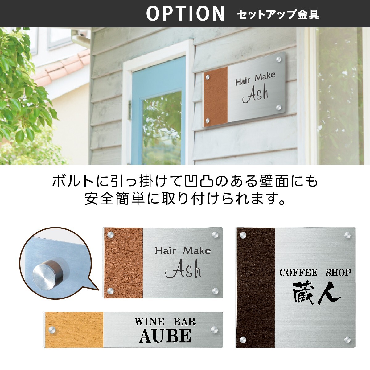 商品詳細 | 3種類の木目カラーと3種類の規格サイズをご用意。セットアップ金具をつければ凹凸のある壁面にも安全に取り付けられます。S・M・Oの3種類の規格サイズの他、カスタマイズサイズでの制作も対応可能ですのでご希望の場合はお問い合わせください(価格が異なります)。 |