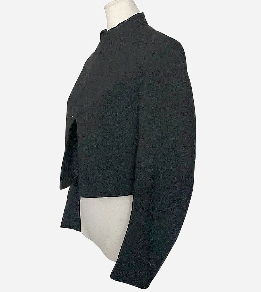 コンパクトなシルエットのジャケットで、ボリュームのあるボトムスやワンピースとの相性がとても良いです。