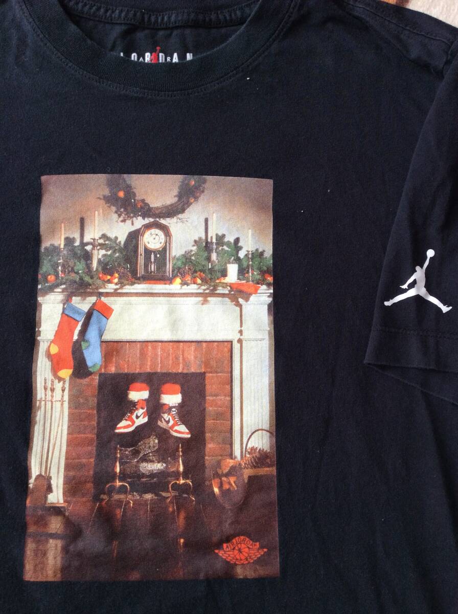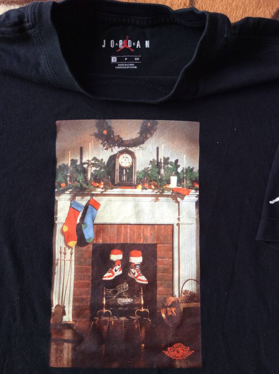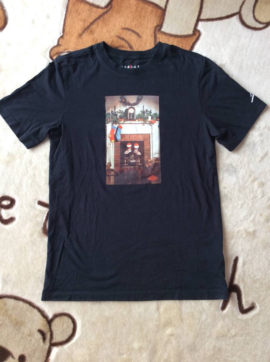 ◎ NIKE エアジョーダン1 クリスマス ウイングマーク Tシャツ フォトプリント サイズS 黒 正規品 美中古      送料320円~