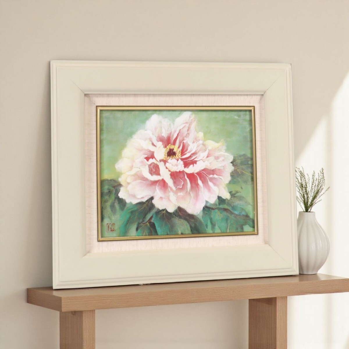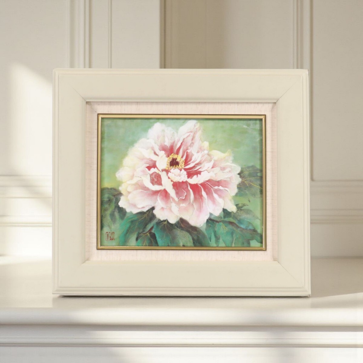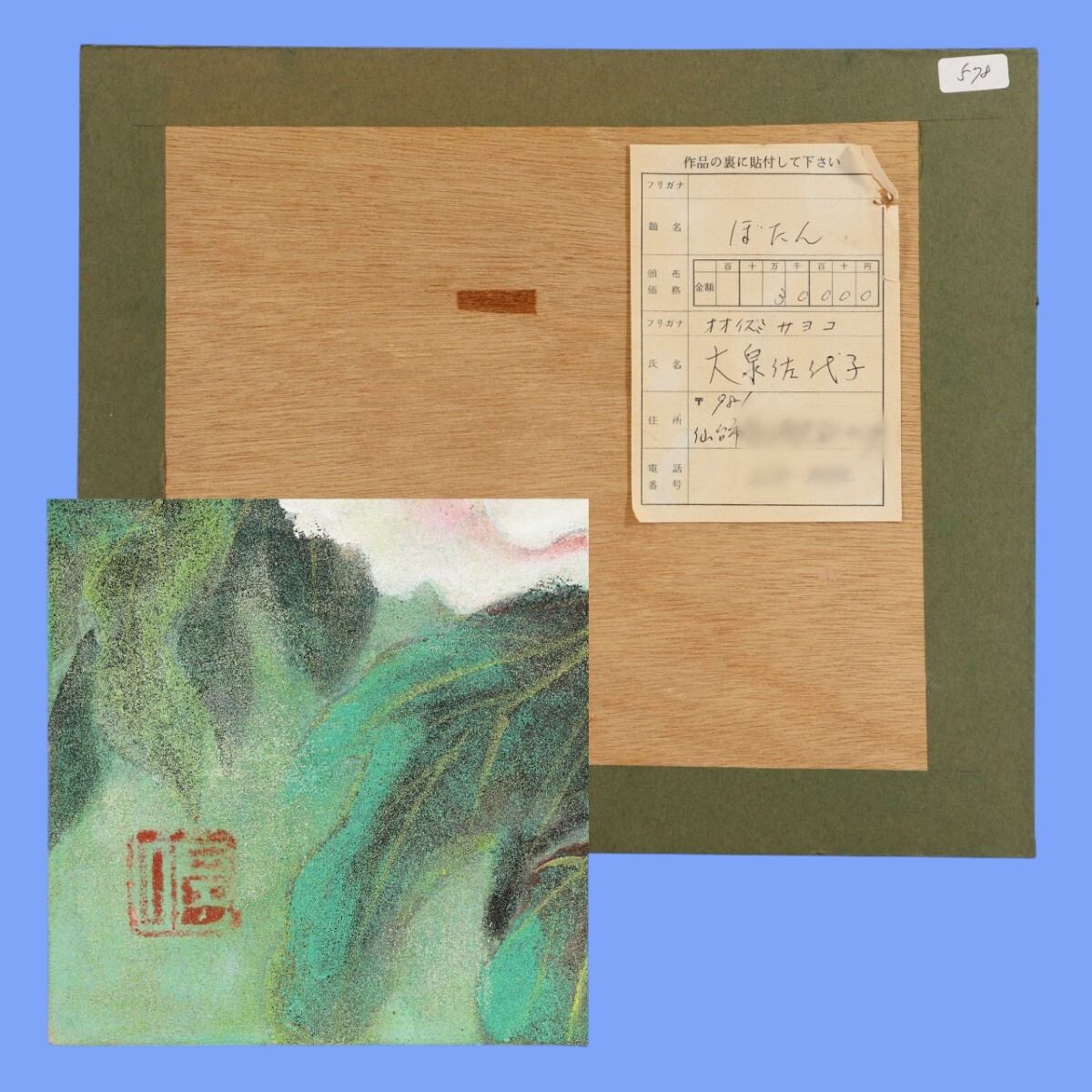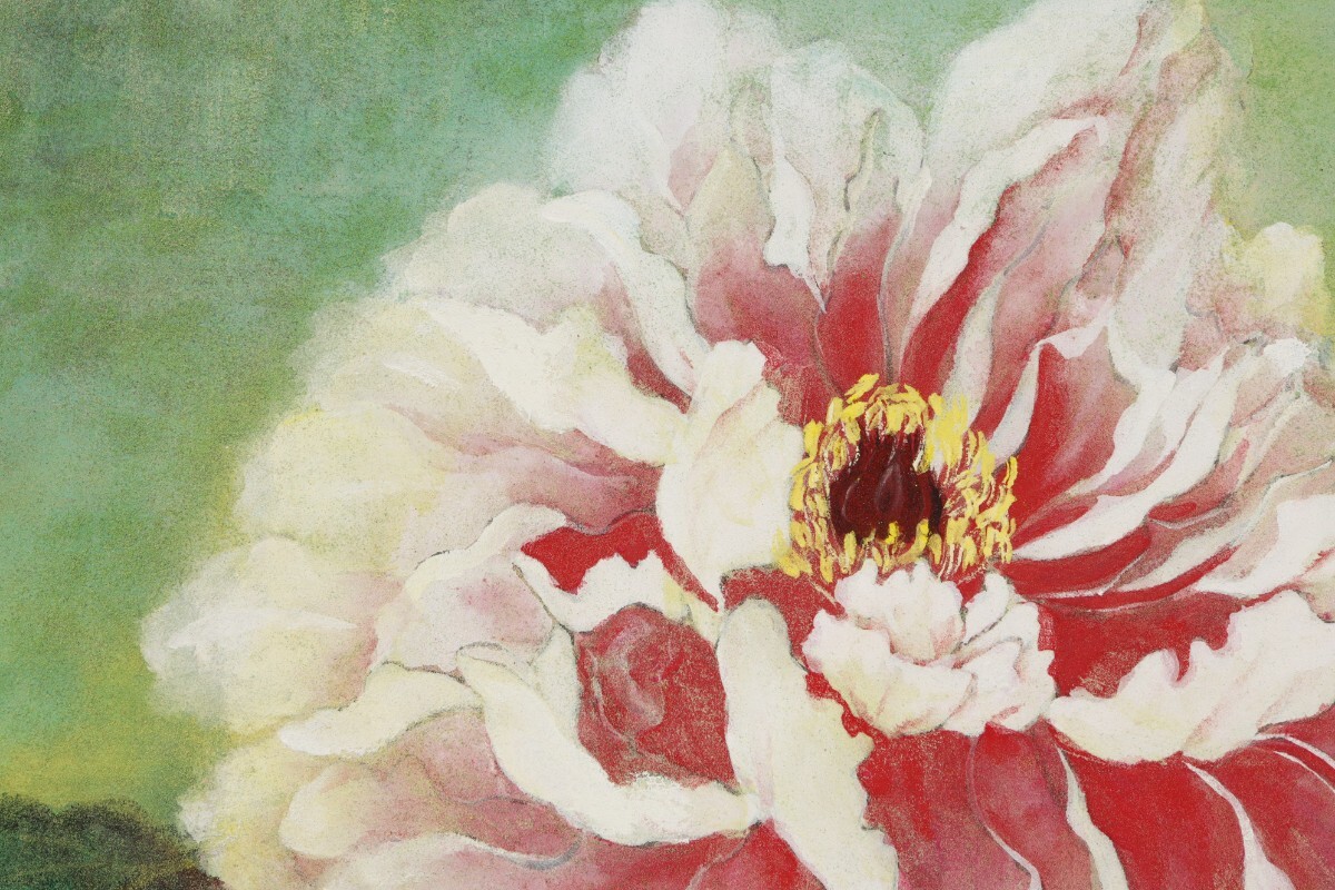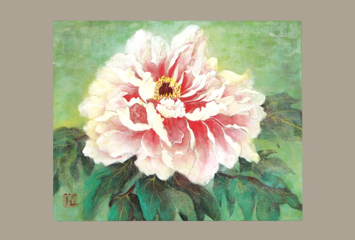 真作 大泉佐代子 日本画「ぼたん」画寸 3号 宮城県仙台市住 頒布会出品作品 四季折々の小さな出会いや発見、その感動を感じ描く 牡丹 11393