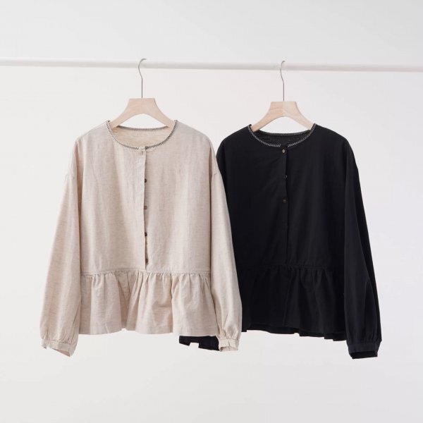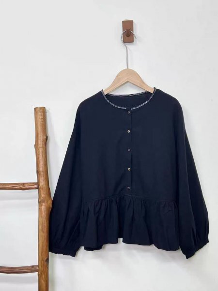 jn 2509 チュニック トップス ワイシャツ 綿麻混 ゆったり フリーサイズ ナチュラル 裾広がる ブラック