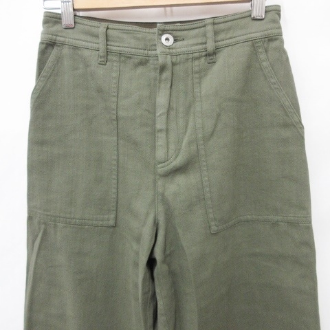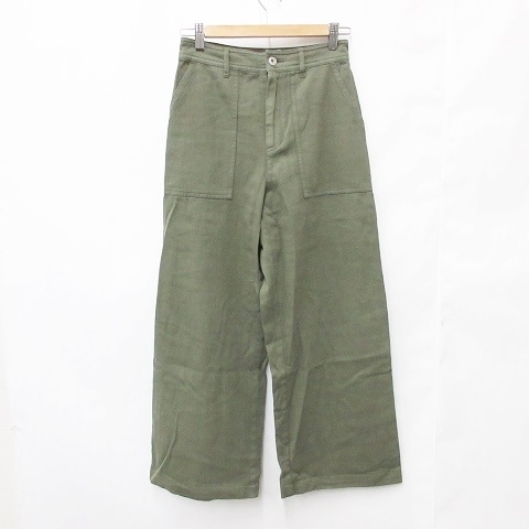 タバサ TABASA パンツ ベイカーパンツ ワイド ロング ゴム 緑 茶 グリーン カーキ ブラウン 32 レディース