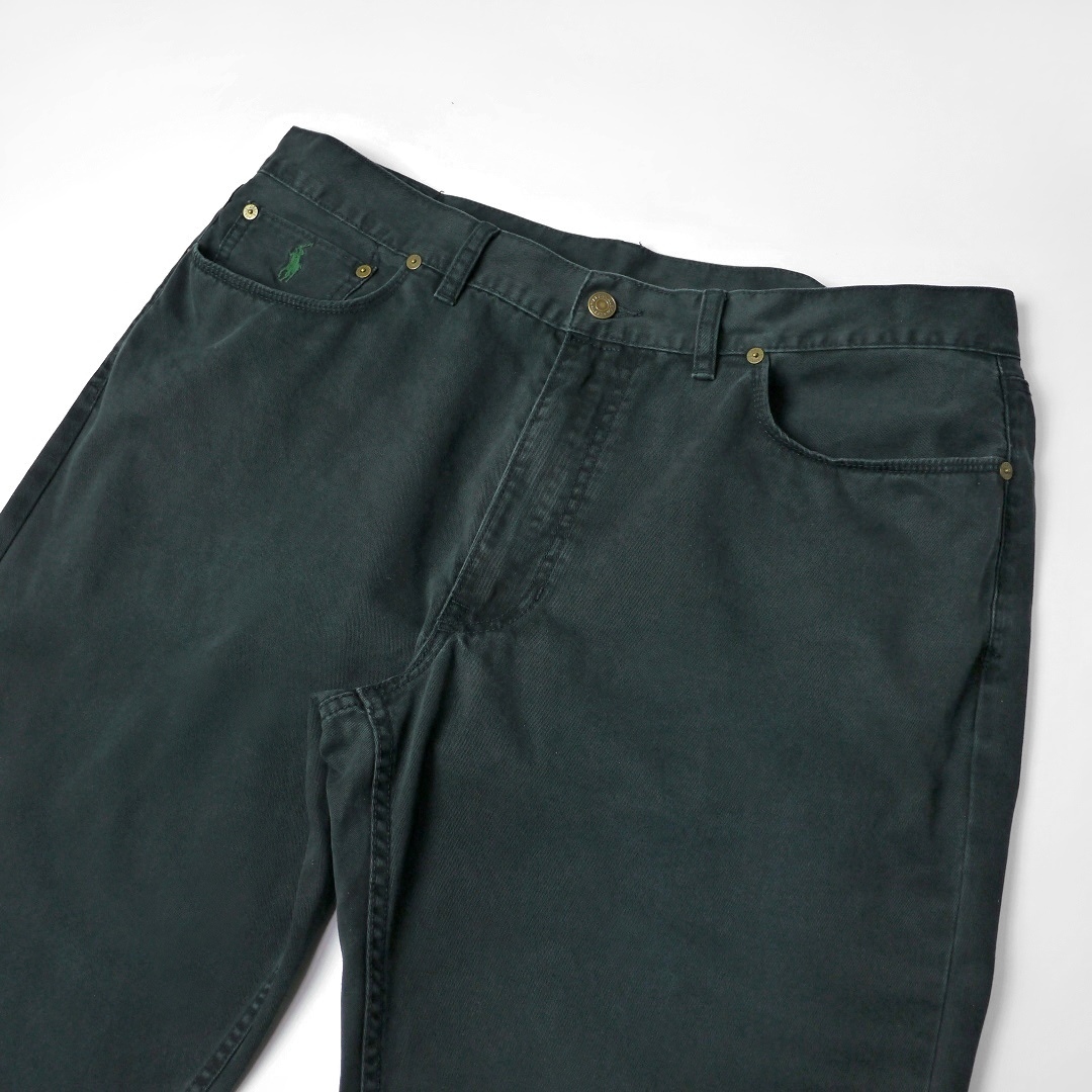■ブランド 90s、PRL、POLO BY RALPH LAUREN、STRAIGHT 650 ■カラー 黒/墨黒、ブラック/フェードブラック ■素材 100%COTTON ■詳細 アメリカで購入したポロラルフローレンのコットンパンツです。 90年代ごろの旧タグでポニー刺繍入り、レザーパッチ付き、ジッパーやリベットなども雰囲気のあるパーツが使用されています。生地はオールコットン、ほどよい厚みのサラッとした生地です。 人気カラーのブラック、イイ感じに雰囲気よく経年変化しております!! シルエットは裾にテーパードの無いストレートです。 ■状態 コットン特有の色落ち、フェード、アタリ、所々にミリ単位の点染み?色抜け?、製織時に生じた織傷/線あと数点あり。どちらも特に目立たない感じです。 モモやヒップのフェード感から判断して元々色落ちの加工が施されていたモデルだと思います。 特筆すべきダメージはなく良好です。 ■サイズ 表記 W38 L32 (実寸W39 L32 *下記参考下さい) ウェスト 49.5cm×2 股下 82cm 総丈 111cm 裾幅 22cm 股上前 30cm 股上後 41cm ワタリ 36cm ヒップ 59cm ■注意事項 状態は細かく確認しておりますが、傷や汚れの見落とし、実寸誤差、色味差異など生じる場合がございます。 不明な点がありましたら入札前にご質問下さい。 商品にあわせて洗濯やクリーニングメンテナンスを施しておりますが、ビンテージやアンティークなど中古品になりますので特性のご理解をお願いします。 |