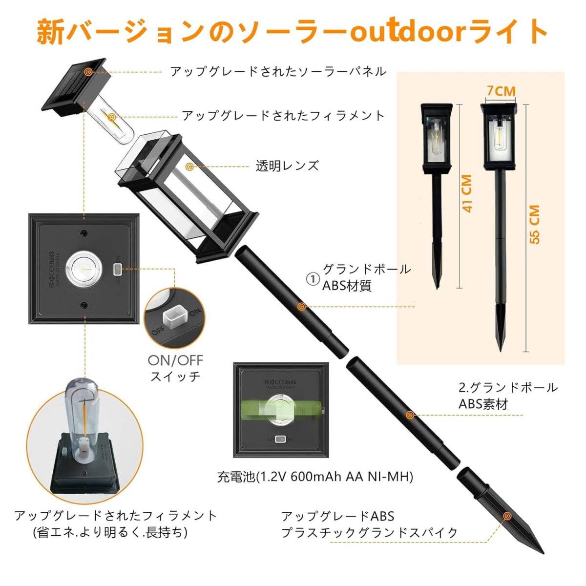 変換率が26%高い5V単結晶シリコンソーラーパネル、800mAh充電式ニッケル水素バッテリーが装備されています。