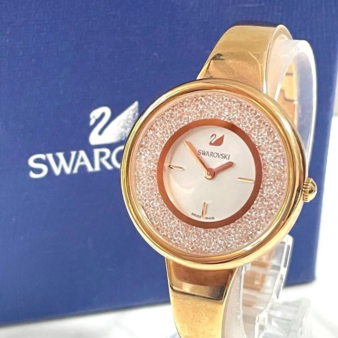 稼動品 スワロフスキー クリスタルライン ゴールドバングル 腕時計