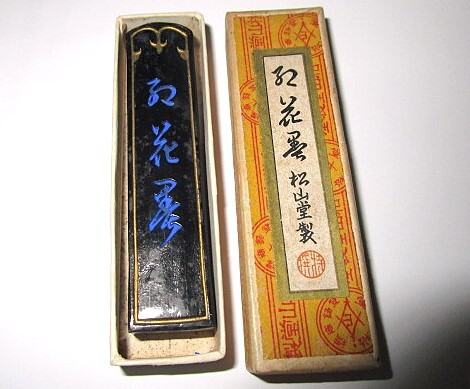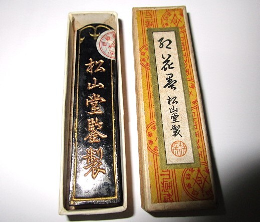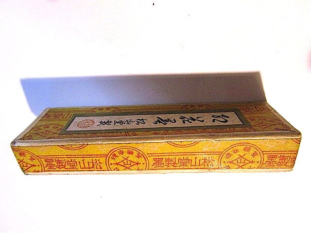 稀少 古墨 未使用★紅花墨 松山堂 1丁型 お花墨 松山堂製 古墨 共箱入★書道具