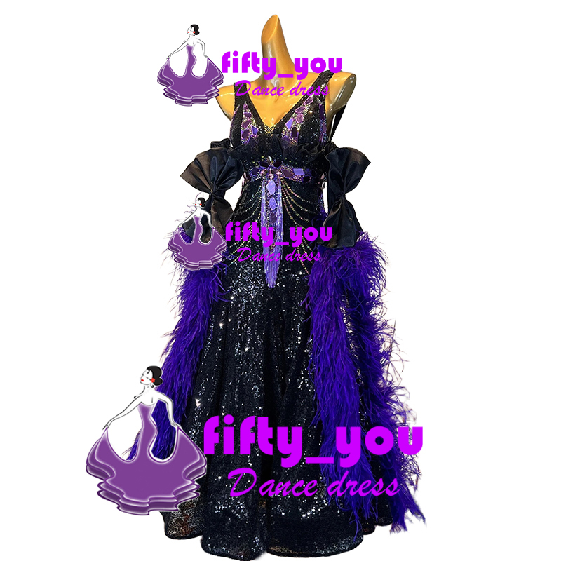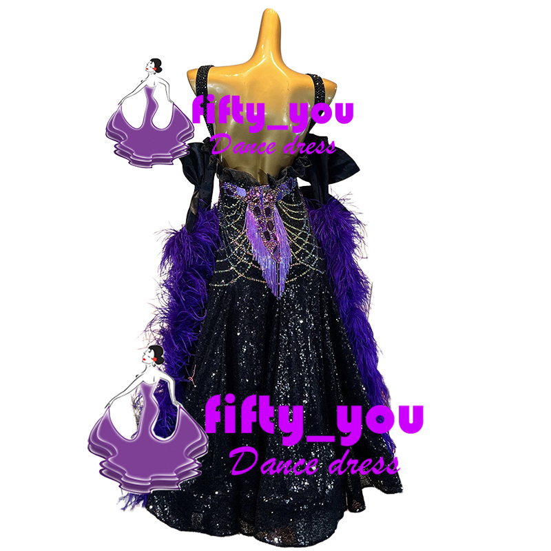 新品fifty_youレディース社交ダンス衣装  モダンドレス セミオーダー 競技高品質ドレス スタンダードドレス  キラキラいスカート