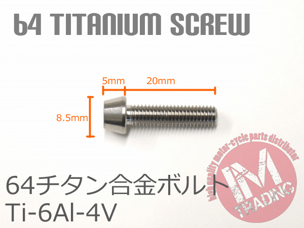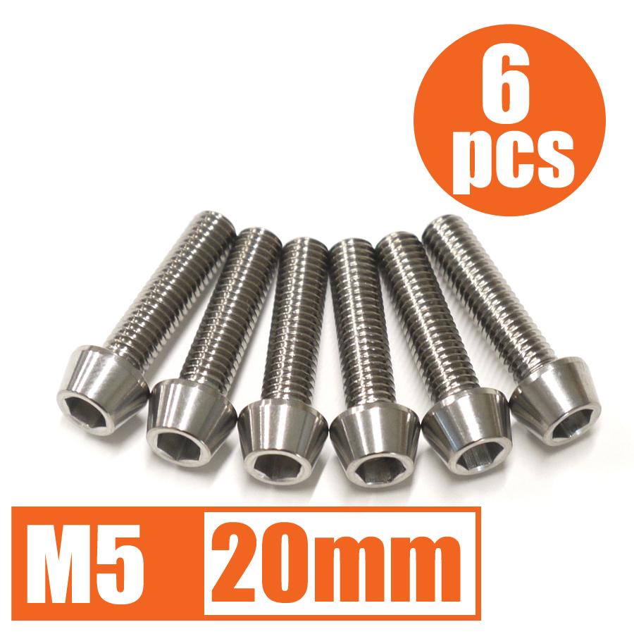 64チタン合金ボルト M5×20mm P0.8 6本セット テーパーキャップ ゆうパケット対応 焼き色なし Ti-6Al-4V