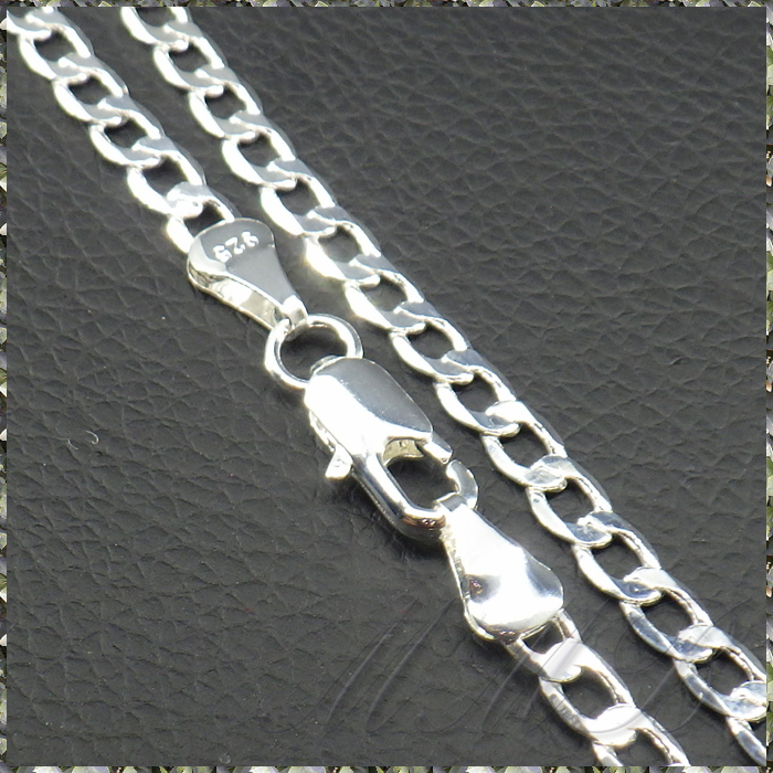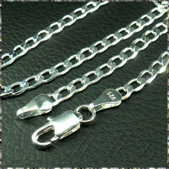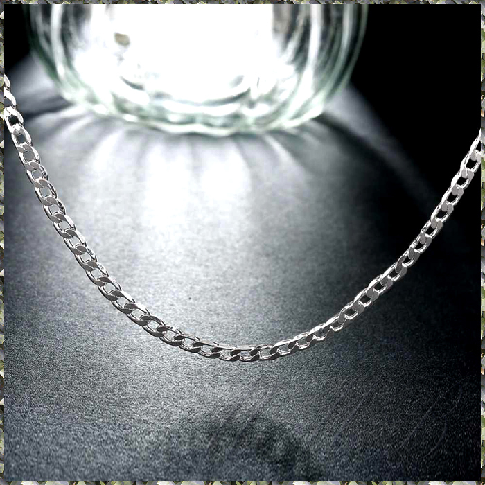 [NECKLACE] 925 Sterling Silver Plated 6面 カット 喜平チェーン スリム フラット シルバー ネックレス 3.5x450mm (5.5g)