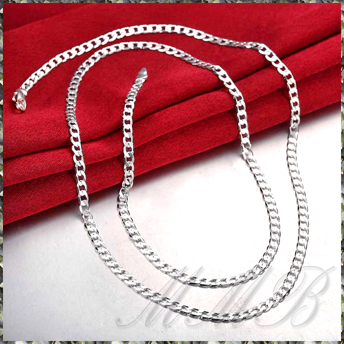 925 Sterling Silver Plated 6面 カット 喜平チェーン スリム フラット シルバー ネックレス です。