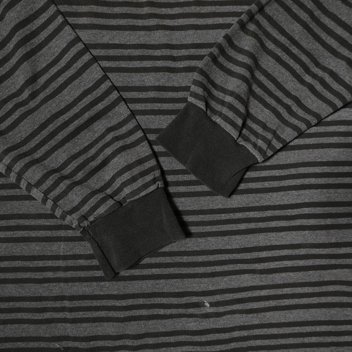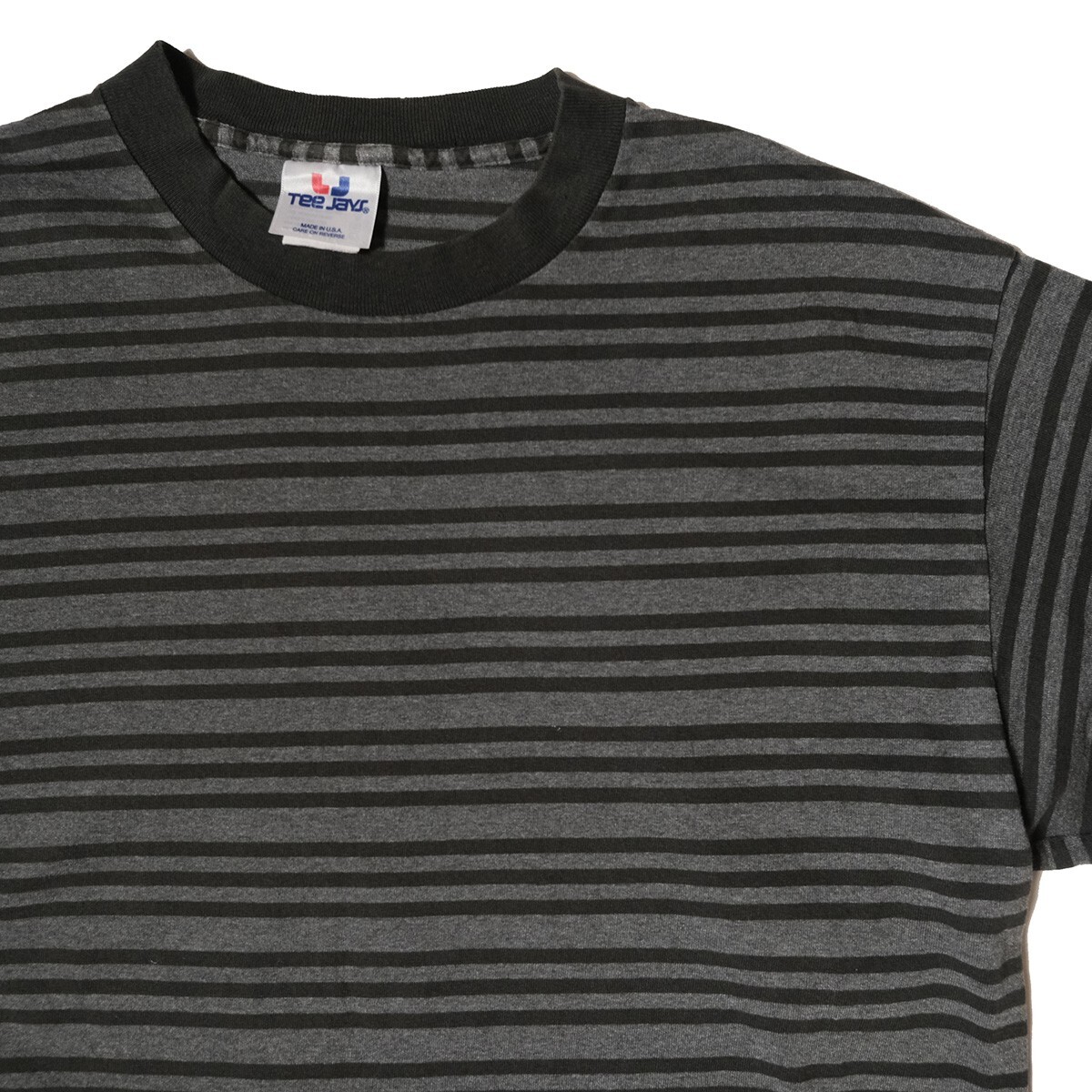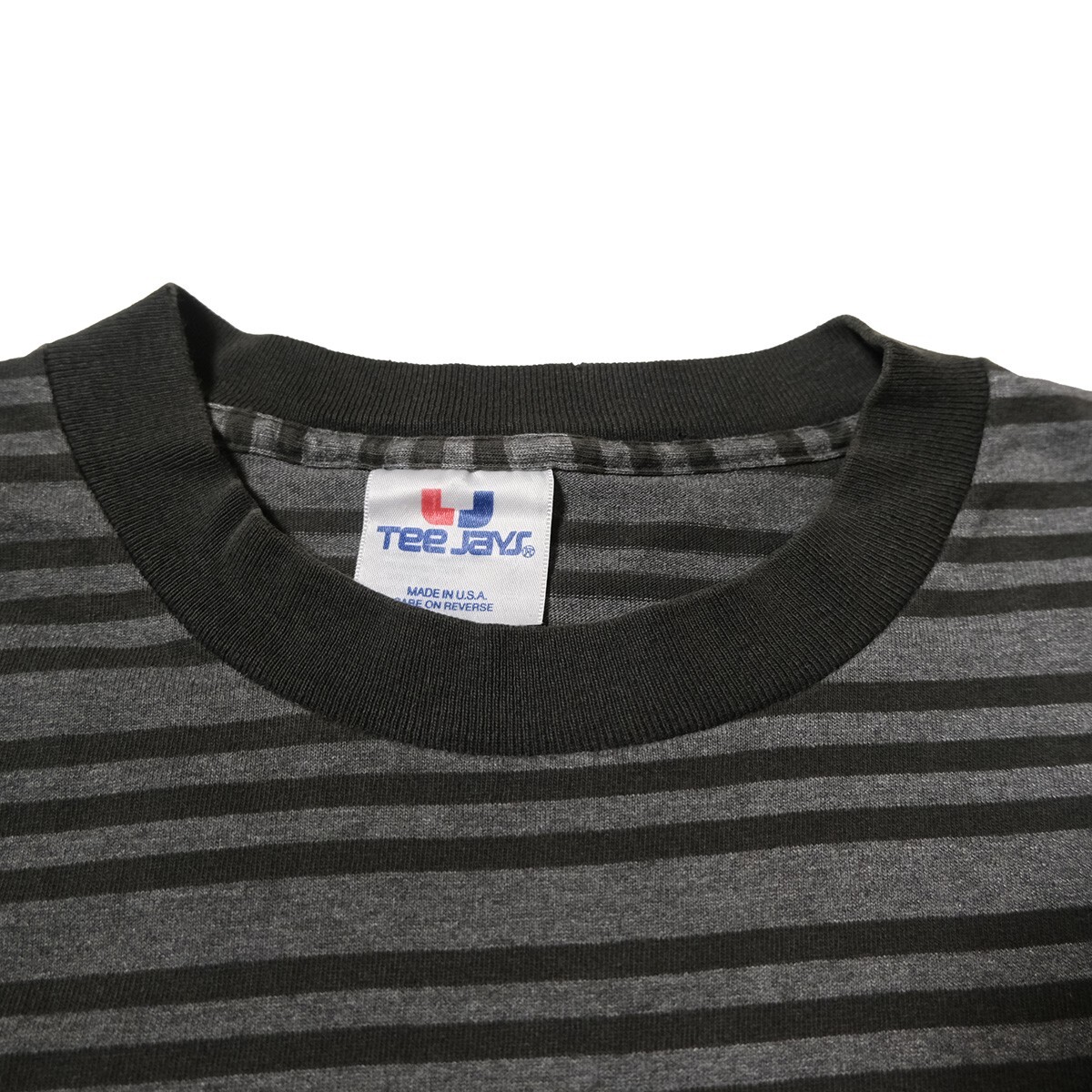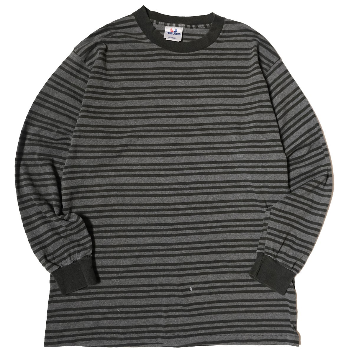 90's USA製 Tee Jays ボーダー クルーネック Tシャツ 長袖 (L) 黒×霜降り灰 ロンT 無地 シングルステッチ アメリカ製 旧タグ オールド