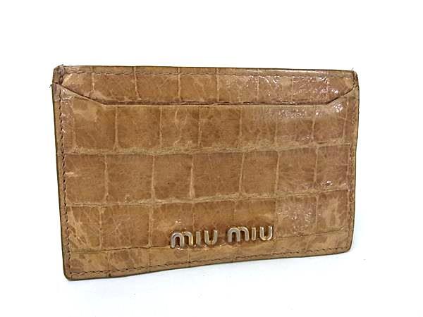 miumiu ミュウミュウ クロコダイル型押しレザー カードケース カード入れ 名刺入れ 定期入れ レディース ライトブラウン系 DJ8298