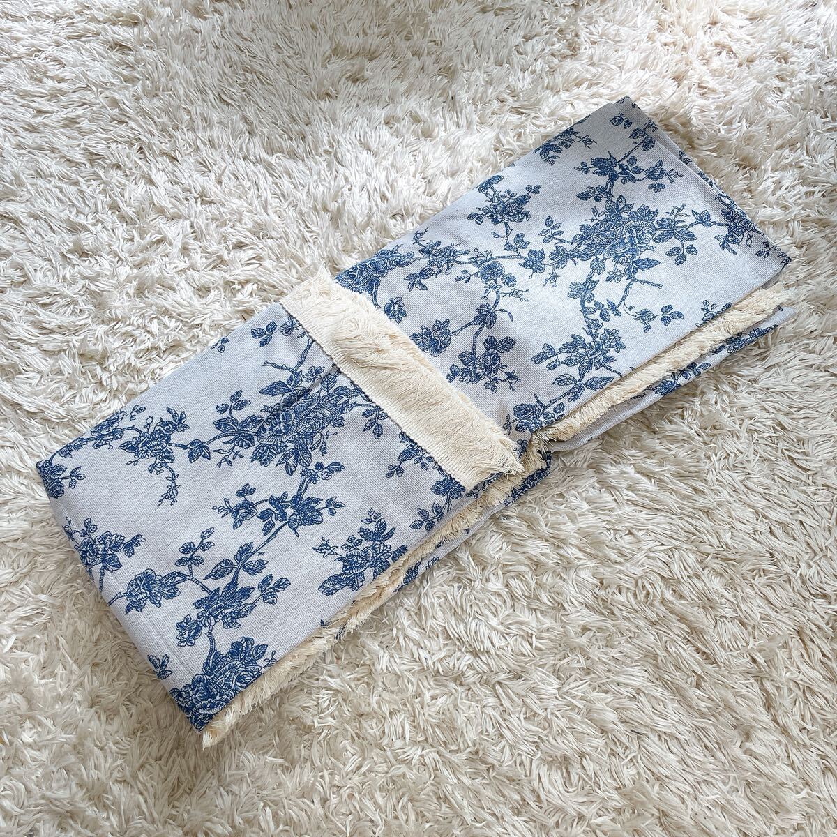 【青藍色花柄】柄物はあると地味になっておすすめ。こういった布のようなシートは、外国人が壁によく飾っています。こうやって普段は部屋に飾っておくのも素敵ですよ。