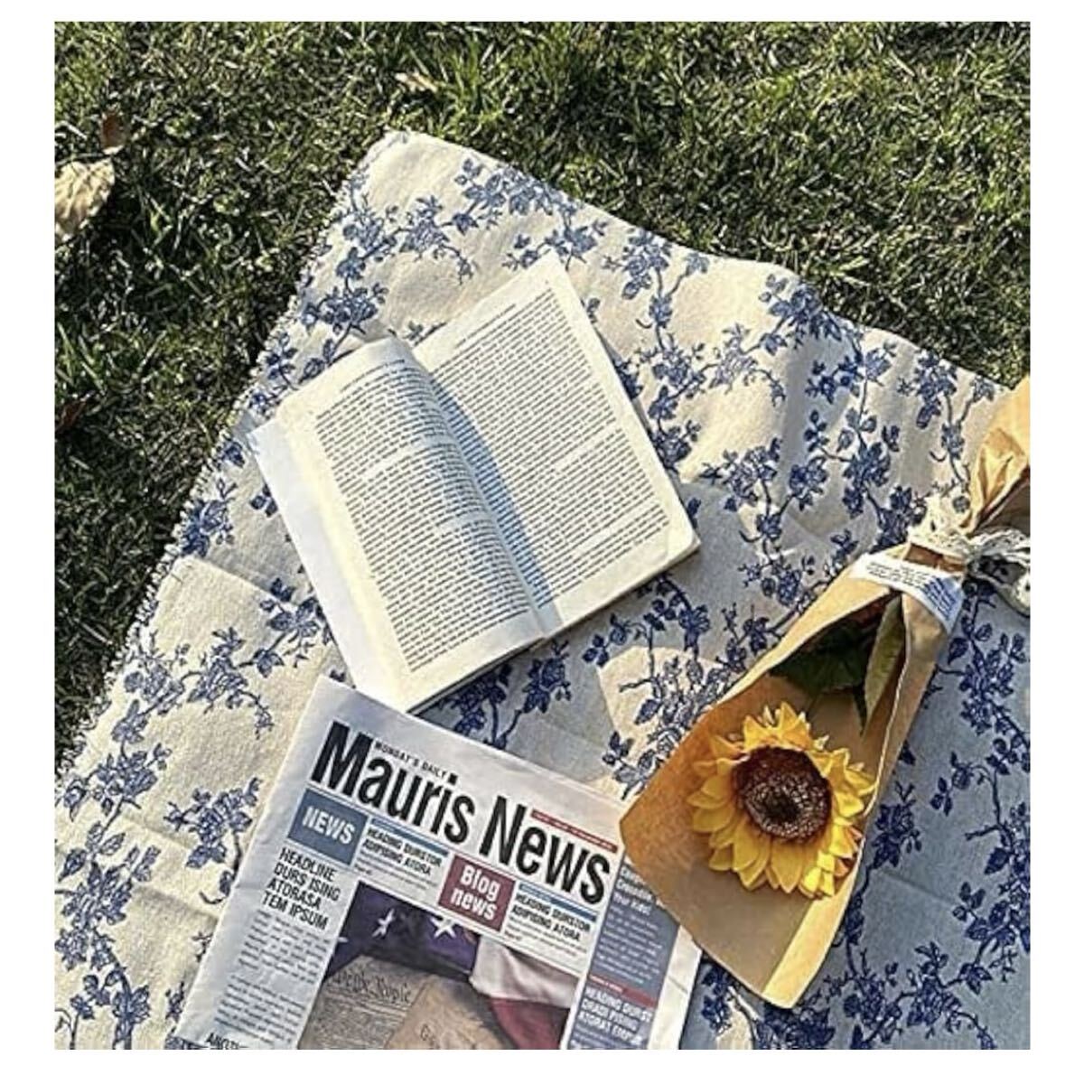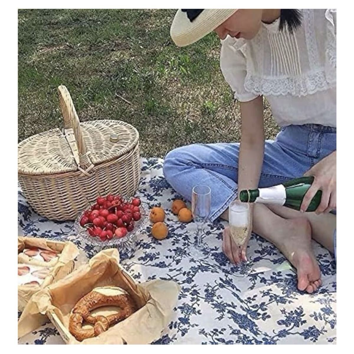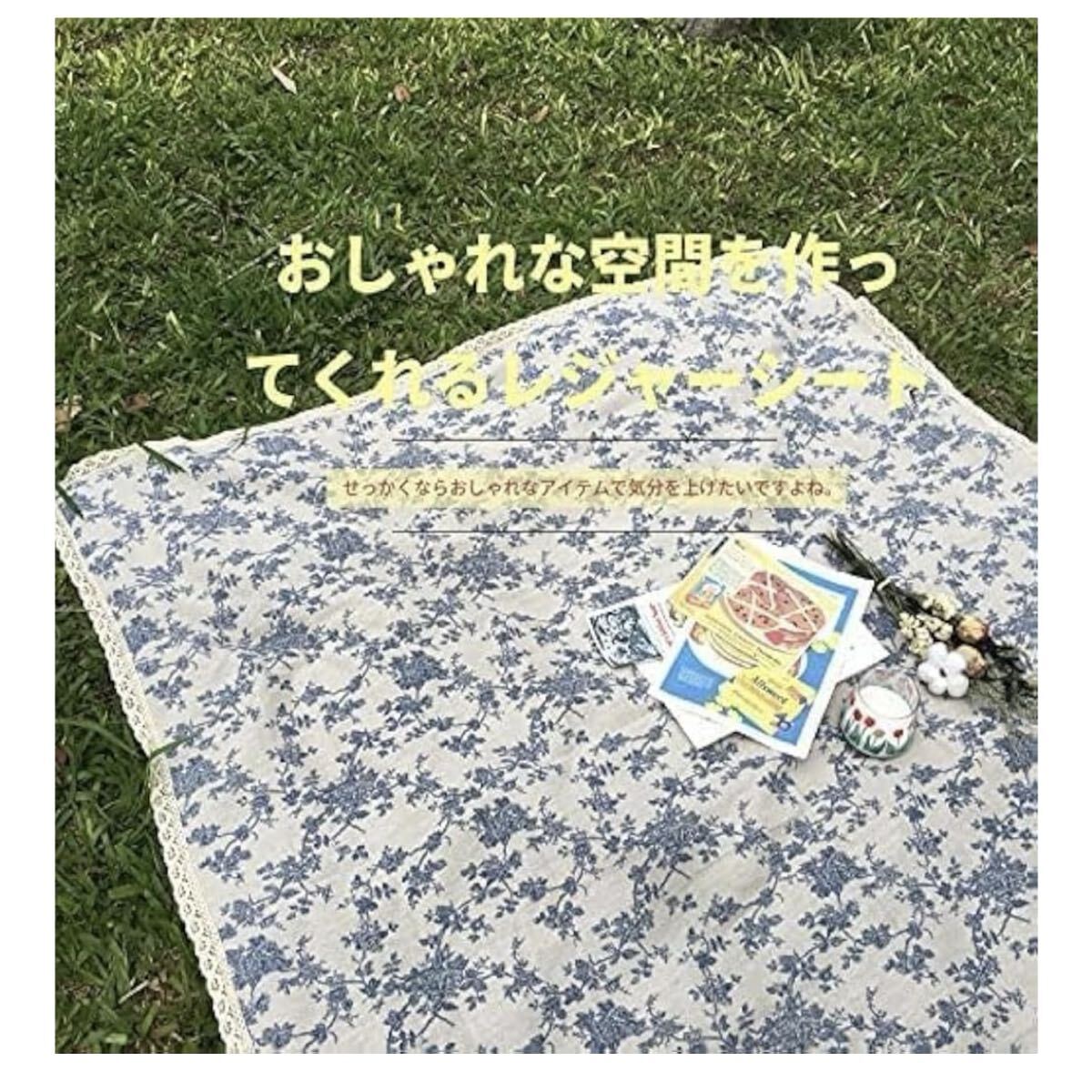 レジャーシート 布 おしゃれ ピクニックシート ピクニックマット 青藍色花柄の布デザイン 北欧風 インスタ映え 薄型 花見 遠足 キャンプ用品 写真撮りの背景 2~3人用 中サイズ 140×145CM