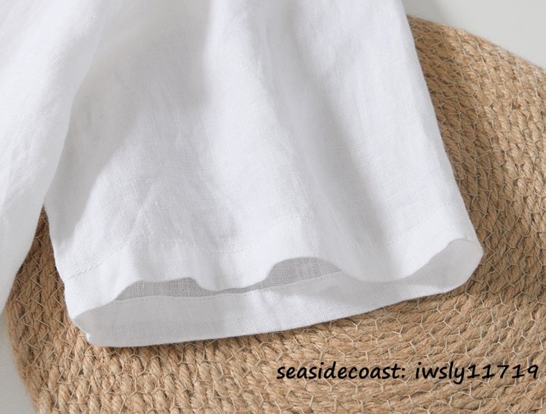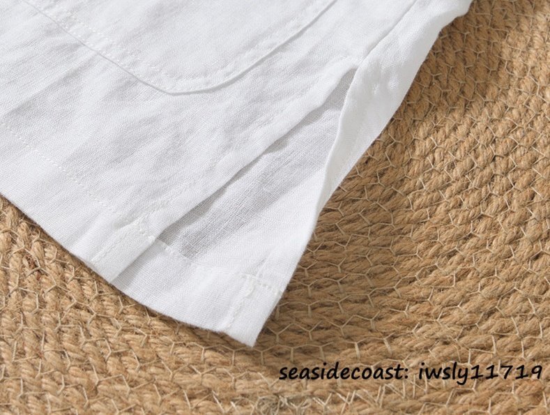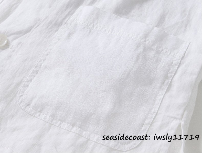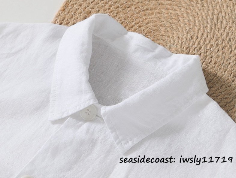 夏新品 リネンシャツ 半袖シャツ 無地 メンズシャツ 亜麻100% ジャケット 麻シャツ 清涼 サマー 快適 ヴィンテージ 心地良し ホワイト M