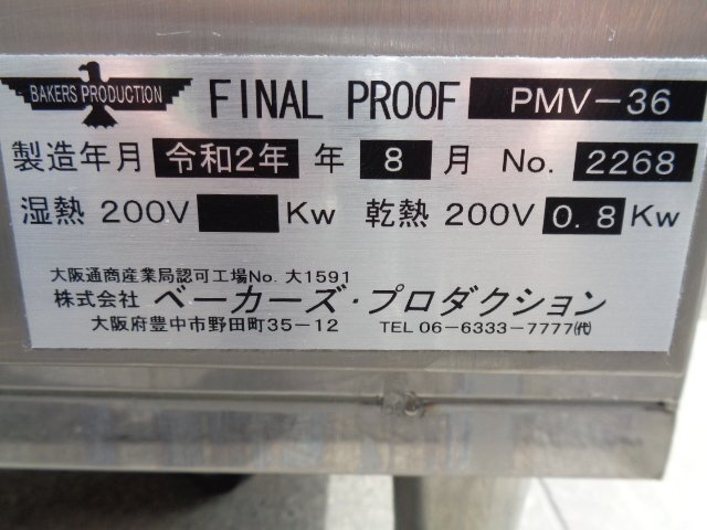 【インボイス登録店】■動作確認済み■2020年製 ベーカーズプロダクション キャビネットホイロ◆PMV-36/3相200V◆東京都葛飾区■ov80