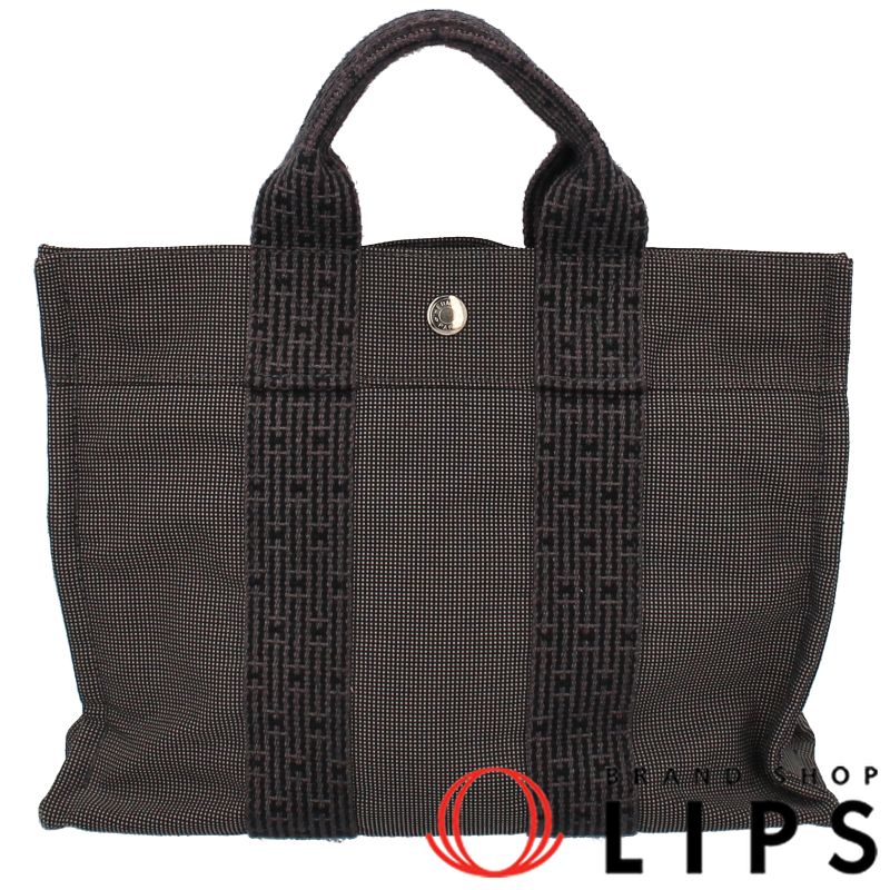 エルメス エールライントートPM キャンバス レディース トートバッグ グレー 美品 中古